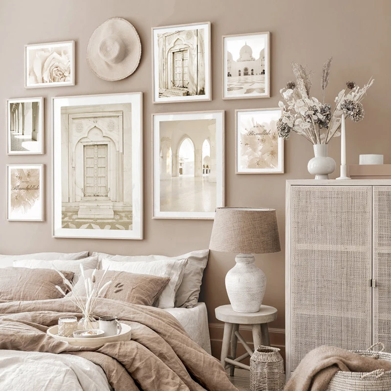 Исламский бежевый плакат пейзаж холст печать мечеть Марокко дверь н...