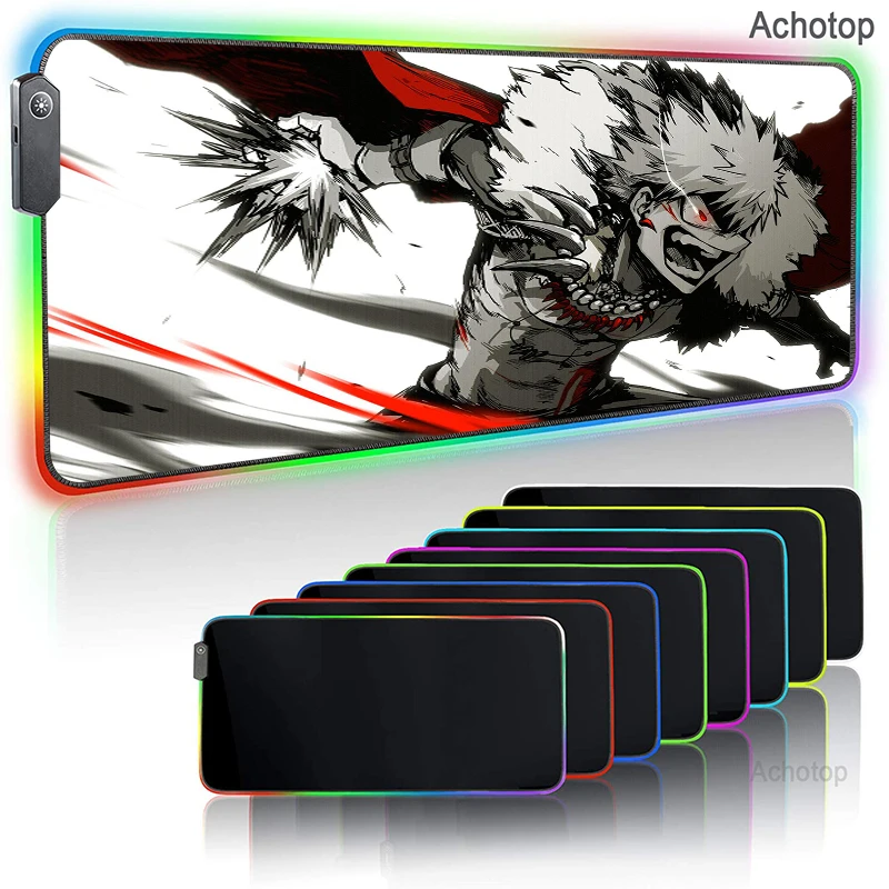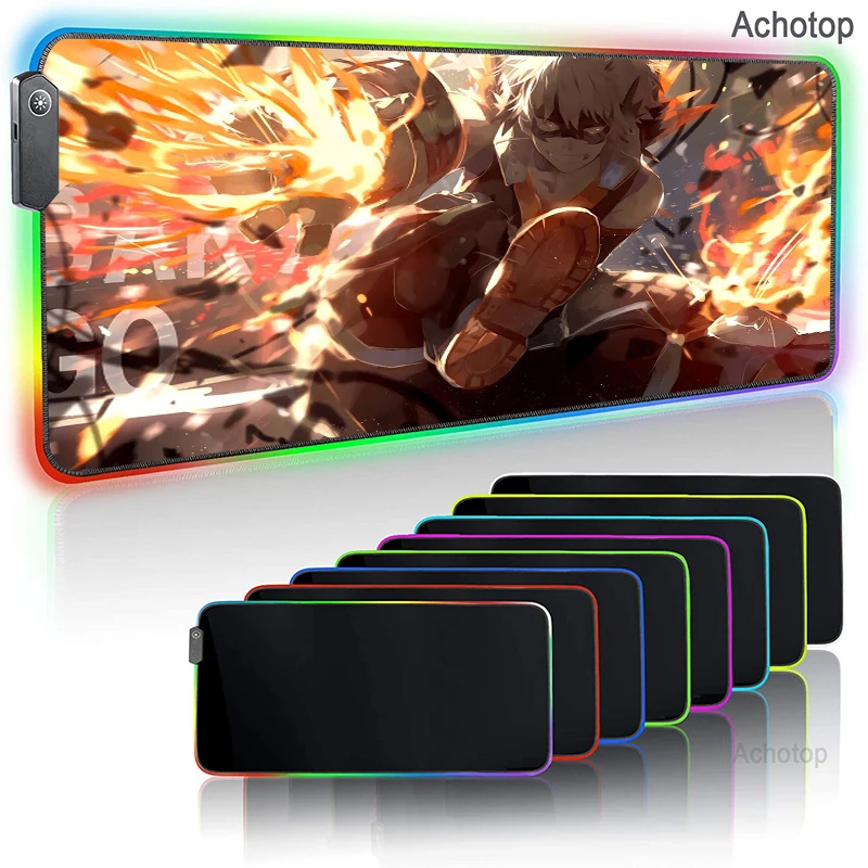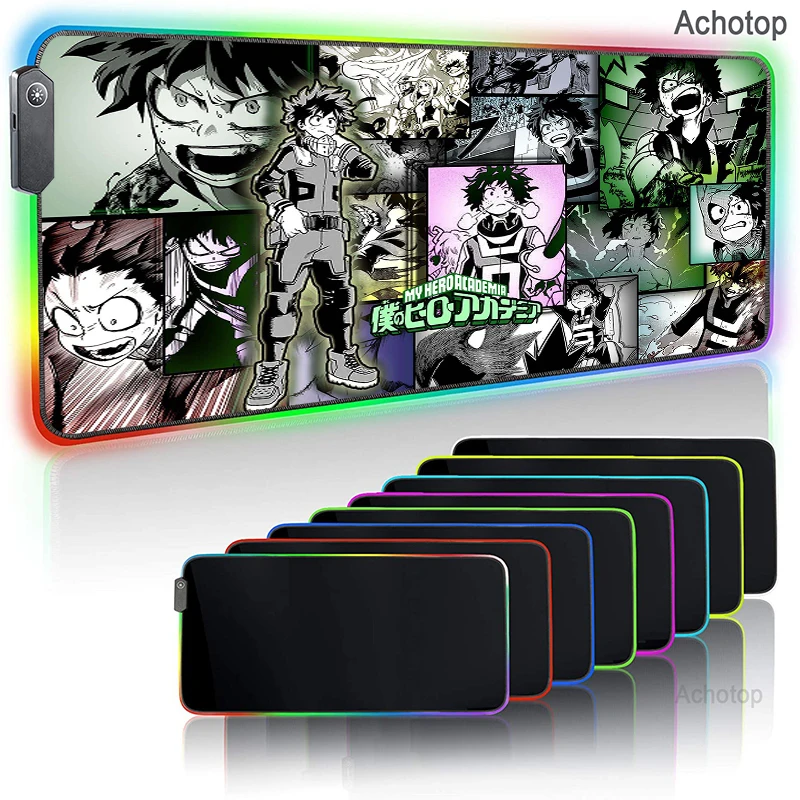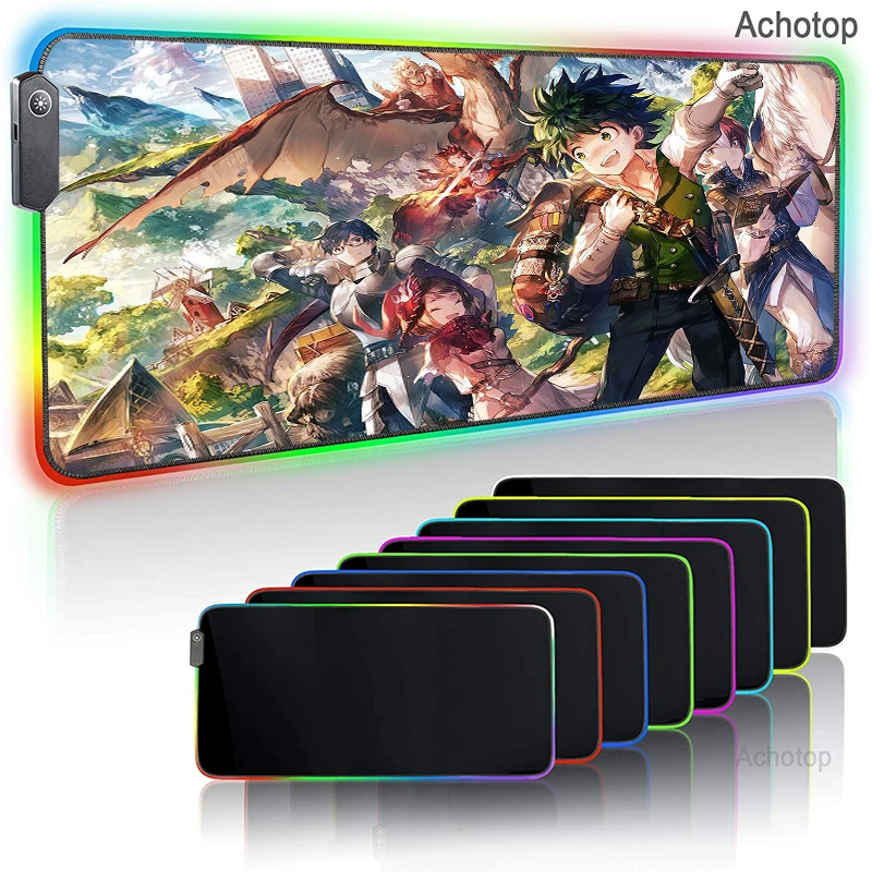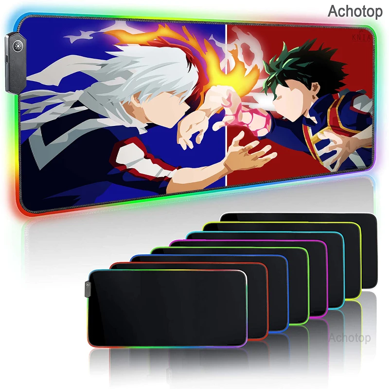 Большой коврик для мыши с аниме Моя геройская Академия, светодиодный игровой коврик для мыши, RGB светодиодный игровой коврик, компьютерный Настольный коврик, коврик для мыши, клавиатуры, японский коврик для манги