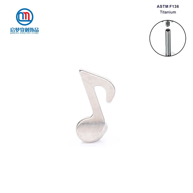 Титановые кольца для губ с внутренней резьбой ASTM F136, серьги-гвоздики для губ с музыкальной ноткой, ювелирные изделия для пирсинга тела