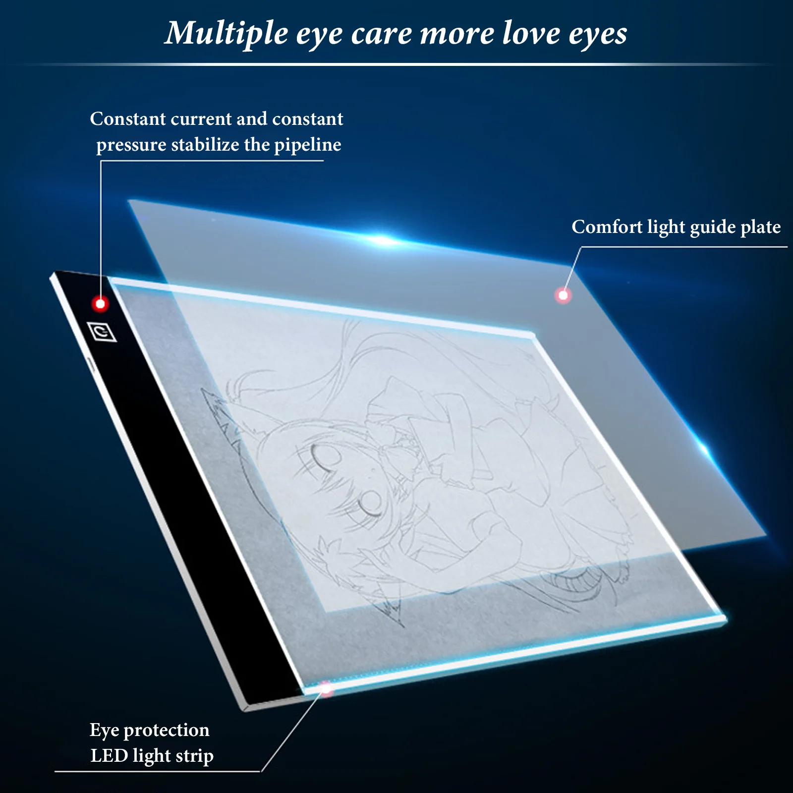 Доска для рисования А4А5 со светодиодной подсветкой, Алмазные колодки для детей, доска для рисования, трехуровневая скетч-панель с регулируемой яркостью