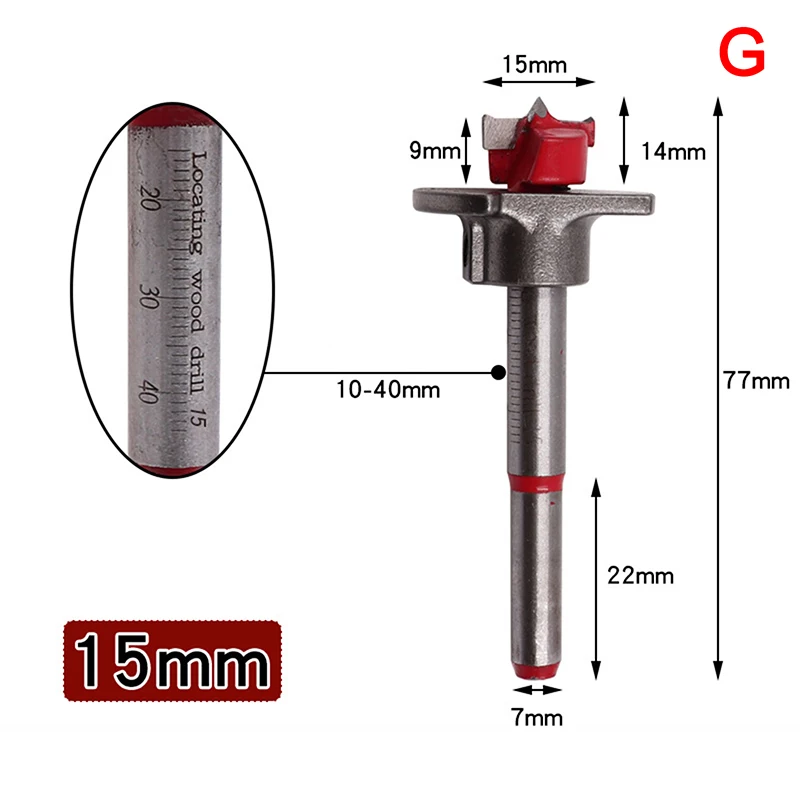 Набор твердосплавных сверл для работ по дереву, комплект из 15 насадок для открывания отверстий на петлях, регулируемых размеров, 15 мм, 20 мм, 25 мм, 30 мм, 35 мм