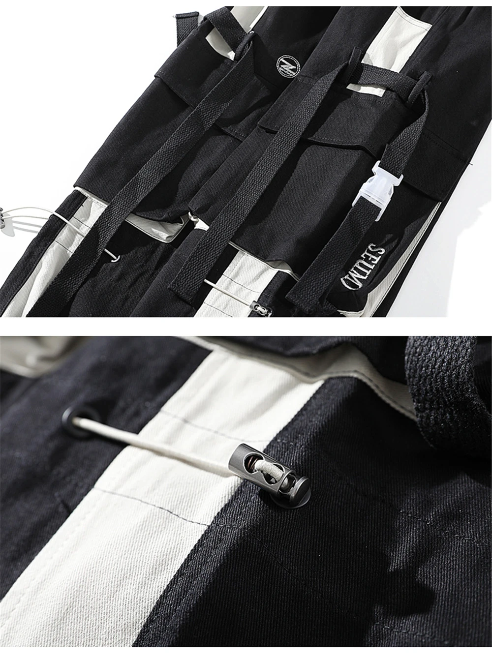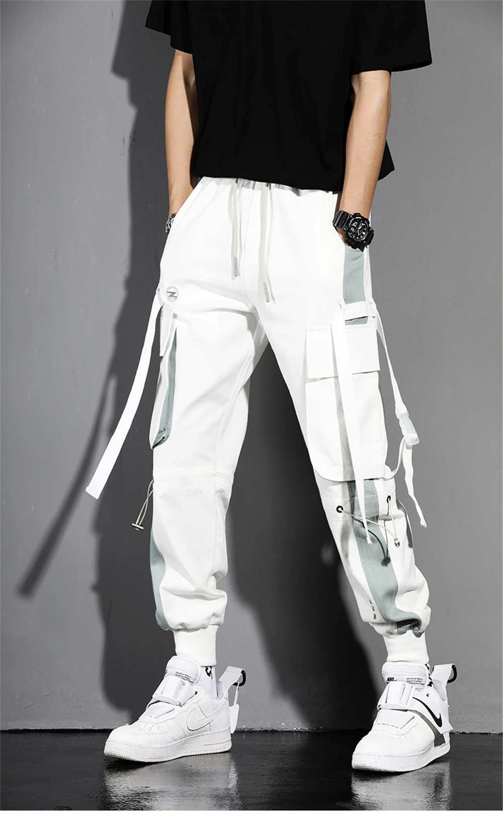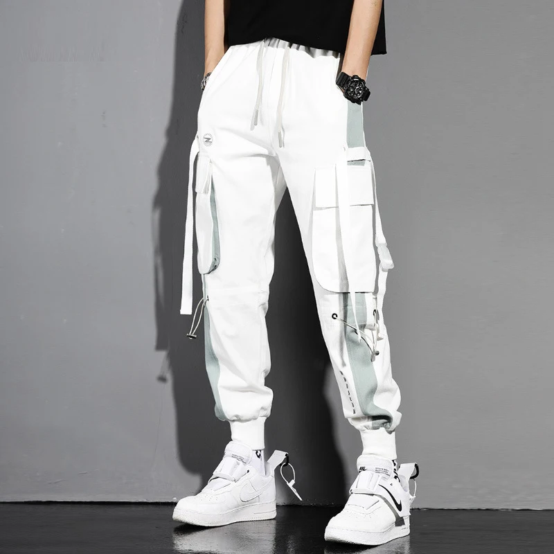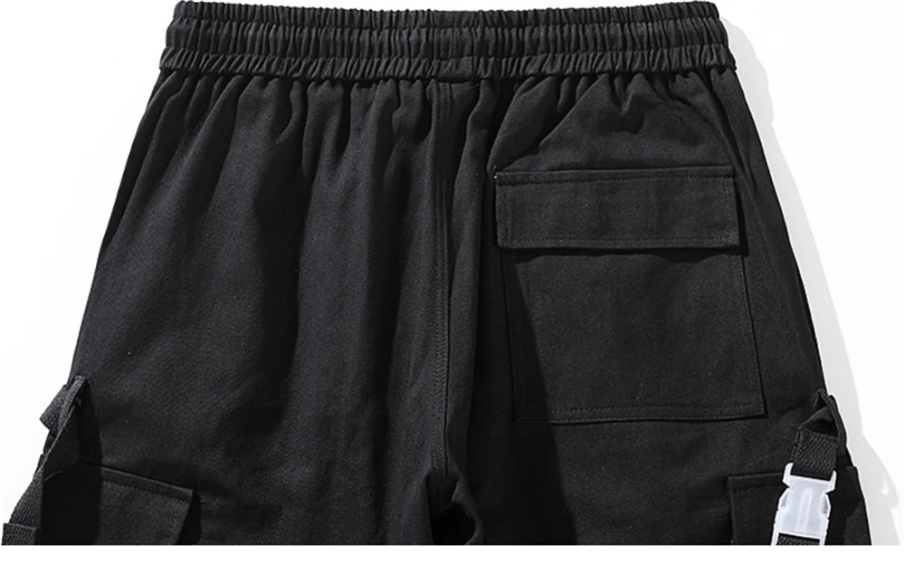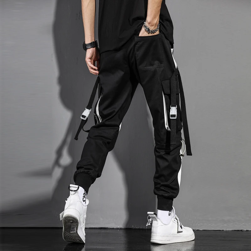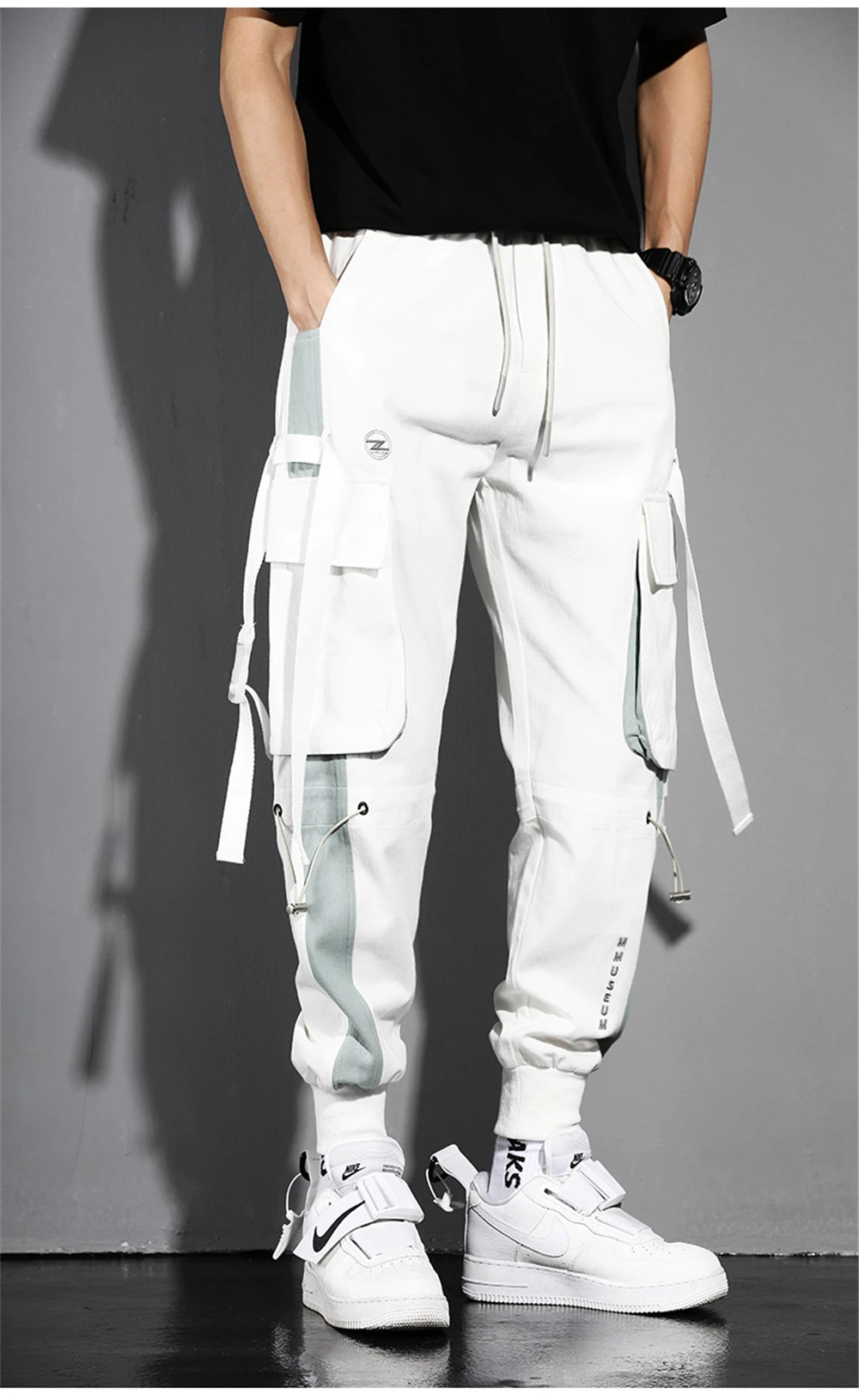 Брюки-карго мужские с лентами, тактическая уличная одежда в стиле хип-хоп, штаны в стиле пэчворк с эластичным поясом, Джоггеры со множеством карманов, черные белые WB510