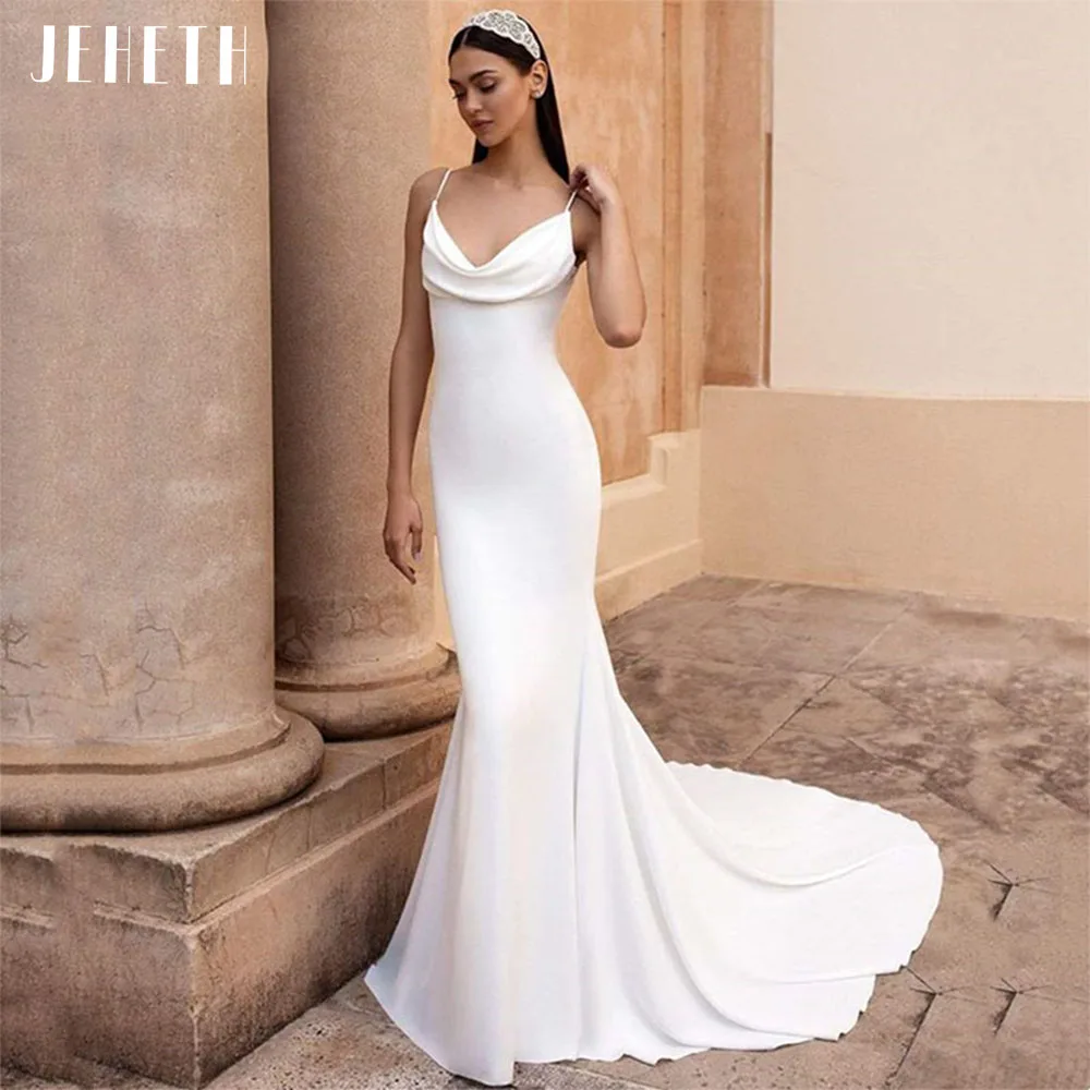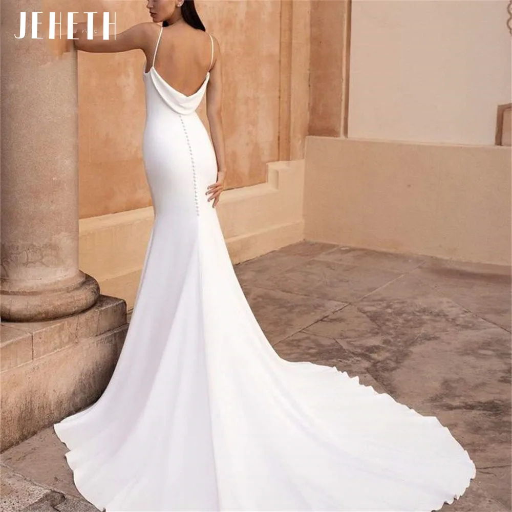 Женское атласное свадебное платье JEHETH, черное платье с воротником-хомутом и юбкой годе, на тонких бретельках, с открытой спиной и пуговицами, 2022