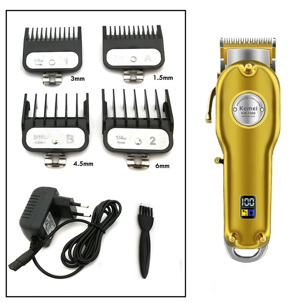 Kemei 1986 полностью Металлическая Парикмахерская профессиональная машинка для стрижки волос Электрический беспроводной триммер для волос Золотая и серебряная машинка для стрижки волос