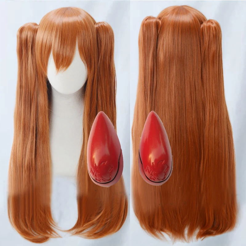 Парик для косплея Asuka Langley Soryu, длинный оранжевый термостойкий синтетический, с 2 зажимами для конского хвоста, с красными шпильками