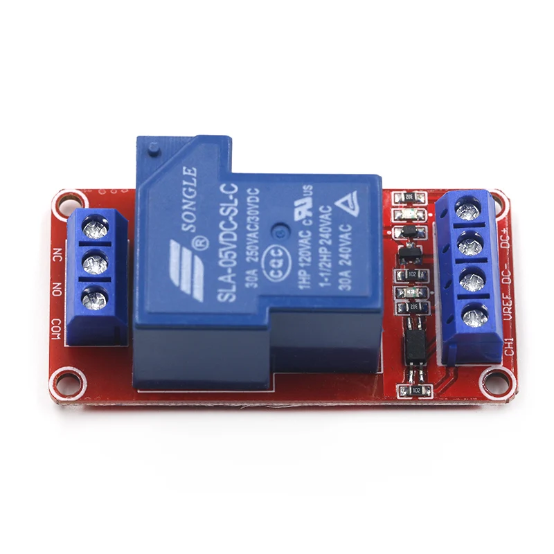 Изолированный 1-канальный высокой мощности реле контроля холодильного агрегата, вызванные высокого уровня сигнала, только в том случае, 3mA в настоящее время требуется для управления реле с управление пропускной способностью 30A, В модуле используются оригинальные высококачественные реле питания, небольшие упаковочные оптопары, высокомощные и высоковольтные триодные, красные и синие сигнальные индикаторы, двухсторонняя печатная плата военного класса, Комплексный макет платы, стабильная производительность, может широко использоваться в различных случаях управления питанием. Описание модуля