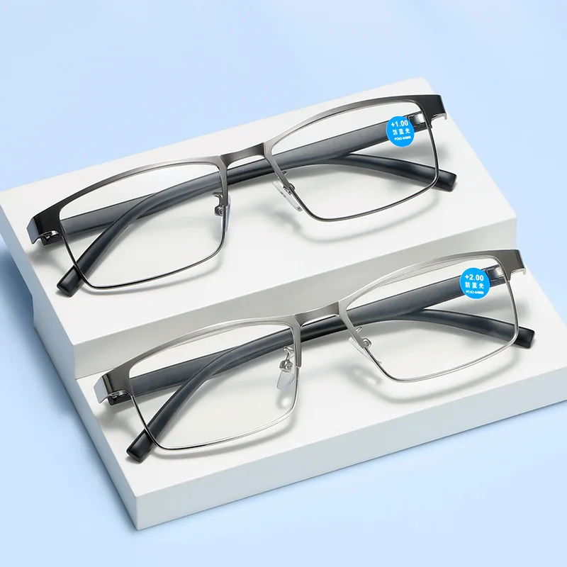 Очки для чтения с защитой от сисветильник света для мужчин и женщин, удобные Компьютерные аксессуары для чтения, в металлической полноразмерной оправе, с квадратными пресбиопическими линзами, Tr90