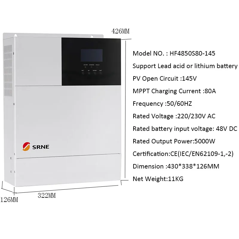 · Принять полное цифровое напряжение и ток двойного замкнутого управления и продвинутогоТехнология SPWM для вывода чистой синусоидальной волны.· Два режима вывода, т. Е. Сетевой обход и выход инвертора могут достичьФункция бесперебойного питания.· Доступно в 4 режимах зарядки: только солнечная энергия, приоритет сети, приоритет солнечной энергии иЭлектрическая и солнечная гибридная зарядка.· Передовые MPPT технологии, с эффективностью до 99.9%.· Широкий диапазон напряжения MPPT, 120-450vdc.· Нет коммерческой мощности или батареи, и солнечная энергия имеетНезависимая функция загрузки.· С функцией активации литиевой батареи с солнечной энергией и сети переменного токаПитание, поддерживает подключение свинцово-кислотной батареи и литиевой батареи.· Дизайн ЖК-экрана и 3 светодиодный индикаторСостояние данных и операции.· Переключатель включения/выключения может управлять выходом переменного тока.· С функцией энергосберегающего режима, он может уменьшить потери без нагрузки.· Интеллектуальный Регулируемый скоростной вентилятор используется для эффективного рассеивания тепла иУвеличенный срок службы системы.Обладает множеством функций защиты и всесторонней защитой на 360 °.· Обладает полной защитой от короткого замыкания, перенапряжения и низкого напряженияЗащита, защита от перегрузки, защита от наполнения и т. д.
