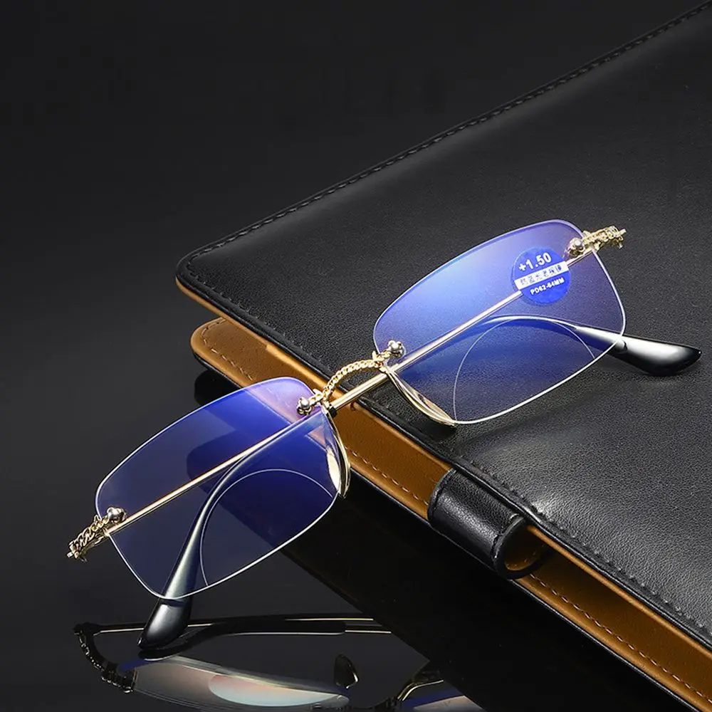 Очки для чтения без оправы с защитой от сисветильник, квадратные безрамные пресбиопические очки с диоптриями + 0, 1,0, 1,5, 2, 2,5, 3, 3,5, 4,0, 1 шт.