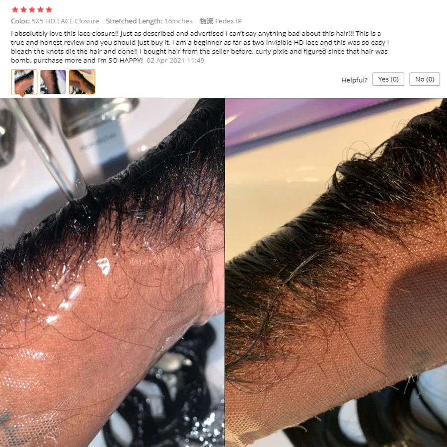 I LOVE this closure! It’s made with REAL HD Lace!! This is my fifth purchase!!! This HD closure works perfectly for the wigs I make for my clients! The HD lace melts so beautifully! I’m glad I found this vendor because their HD closures are the best I and my clients have worn to date. The HD lace so melts easily! The hair is beautiful and soft. The hair holds a curl very well and can be colored. Plus, the length is accurate.
