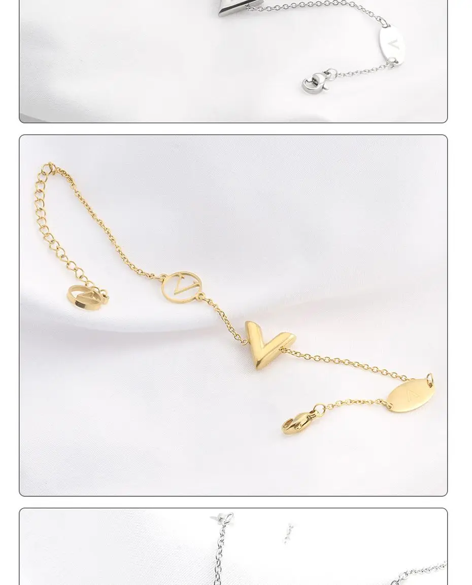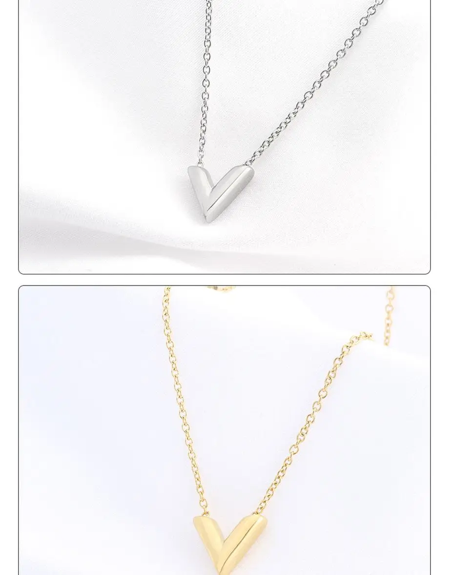 Женское ожерелье с подвеской в виде буквы V, из нержавеющей стали