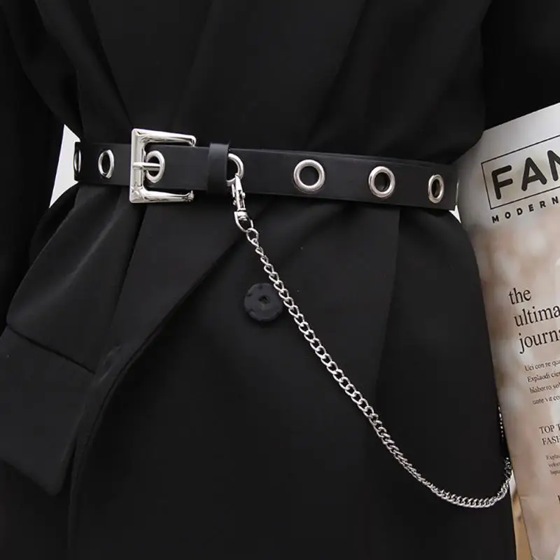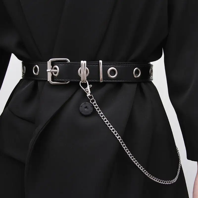 Ремень в стиле панк с цепочкой с отверстиями для женщин, универсаль...