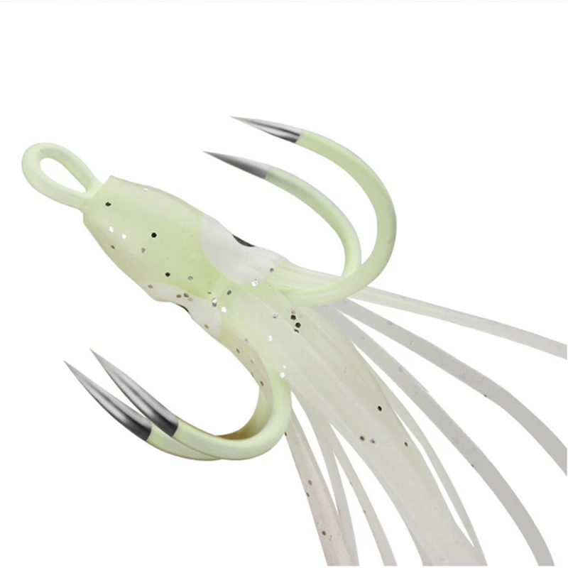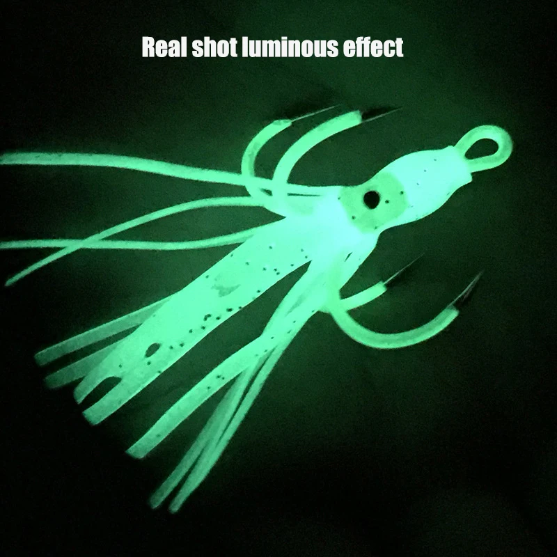 1 шт. светящаяся искусственная наживка для юбки кальмара, Мягкая наживка для троллинга, наживка для юбки, наживка для морской рыбы, светящаяся в темноте, 4 крючка