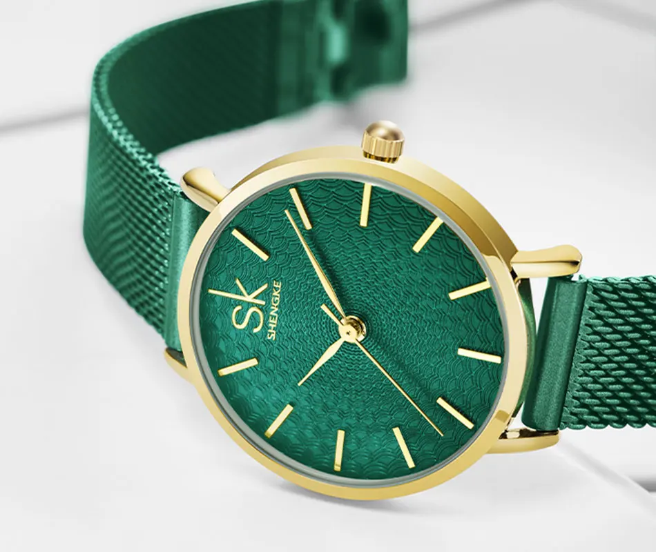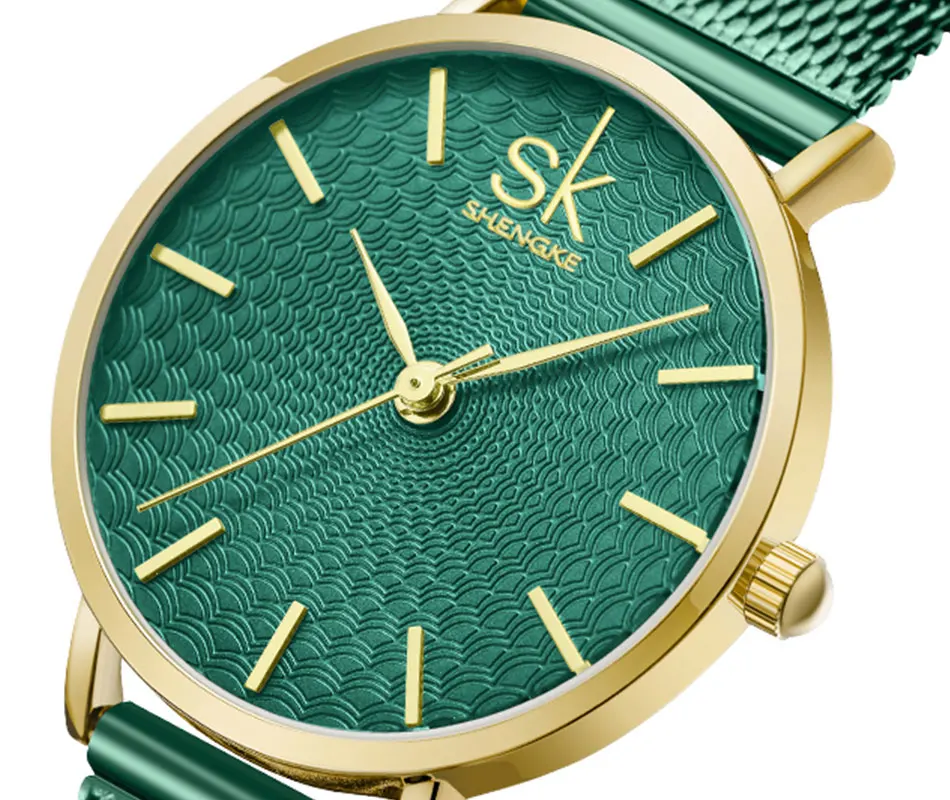 Часы Shengke женские с зеленым циферблатом, модные с японским кварцевым механизмом, тонкие регулируемые с ремешком