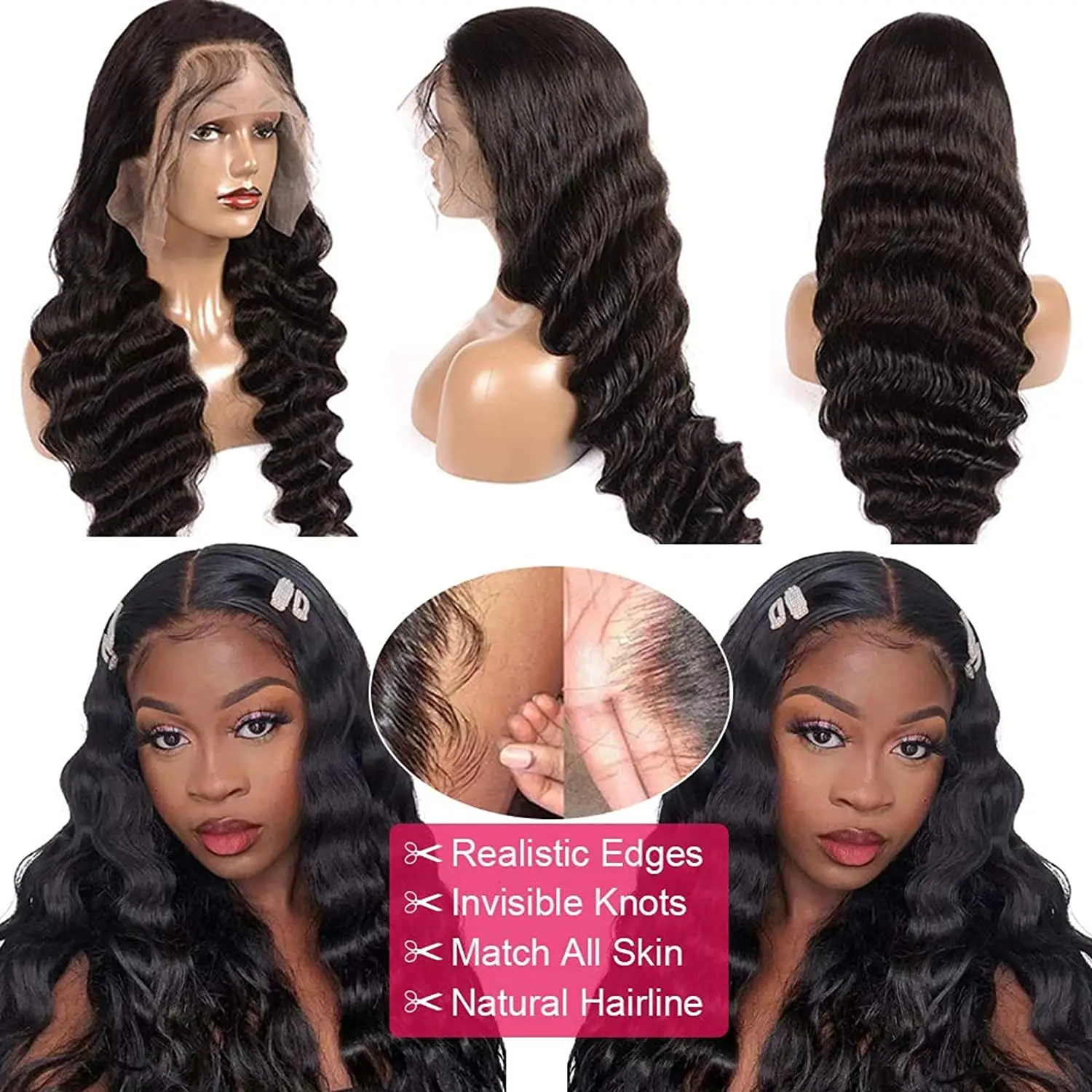 Парик с глубокой волной спереди, бразильский Свободный парик с глуб...