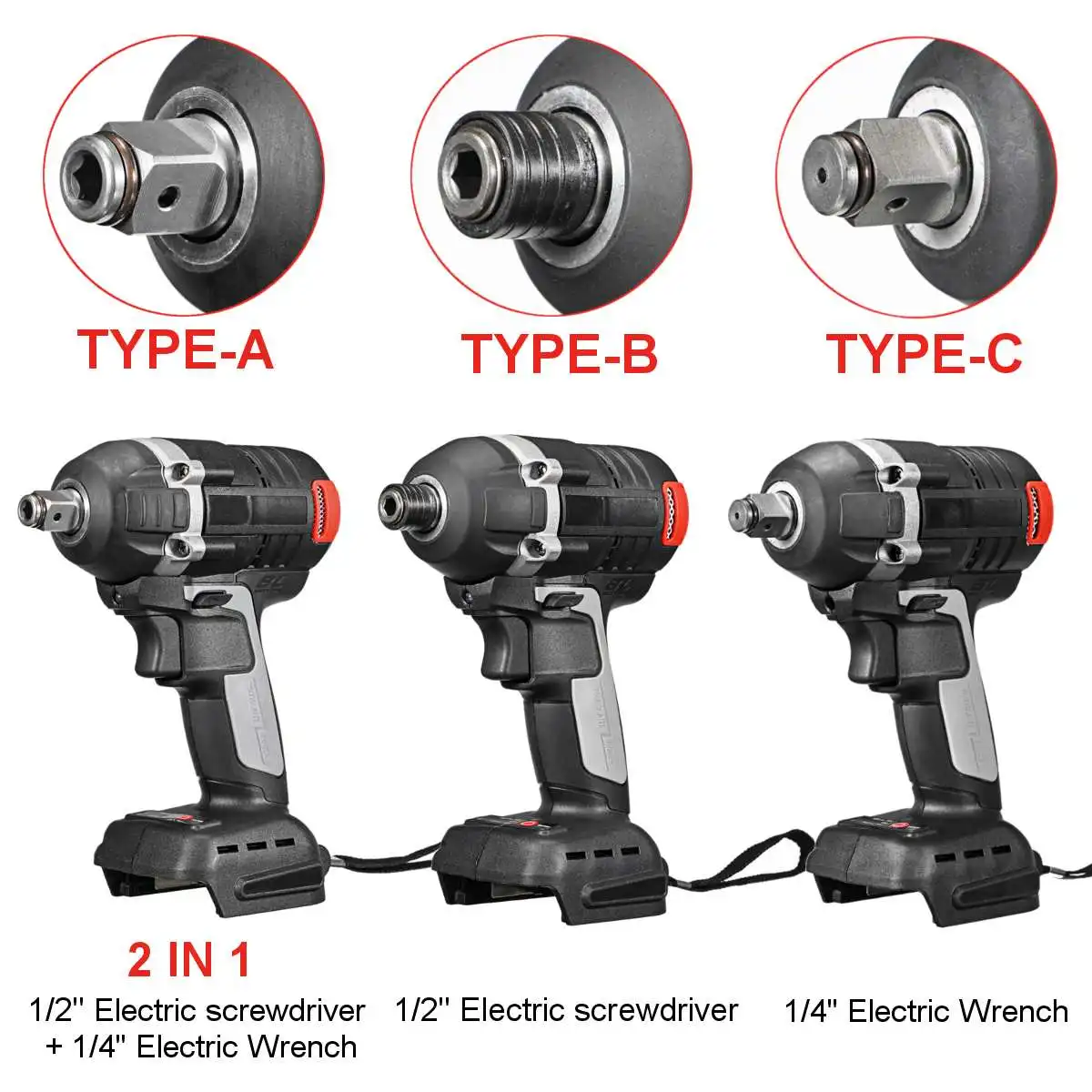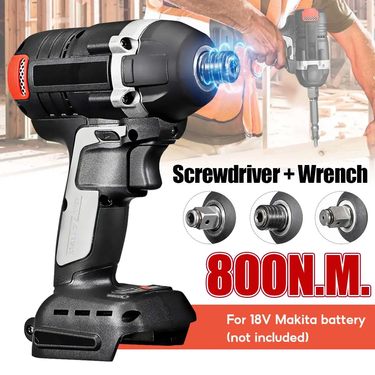 2 in1 18V 800N.m. Литий-ионный бесщеточный беспроводной электрический 1/2 "гаечный ключ 1/4" отвертка дрель Замена для батареи MAKIT
