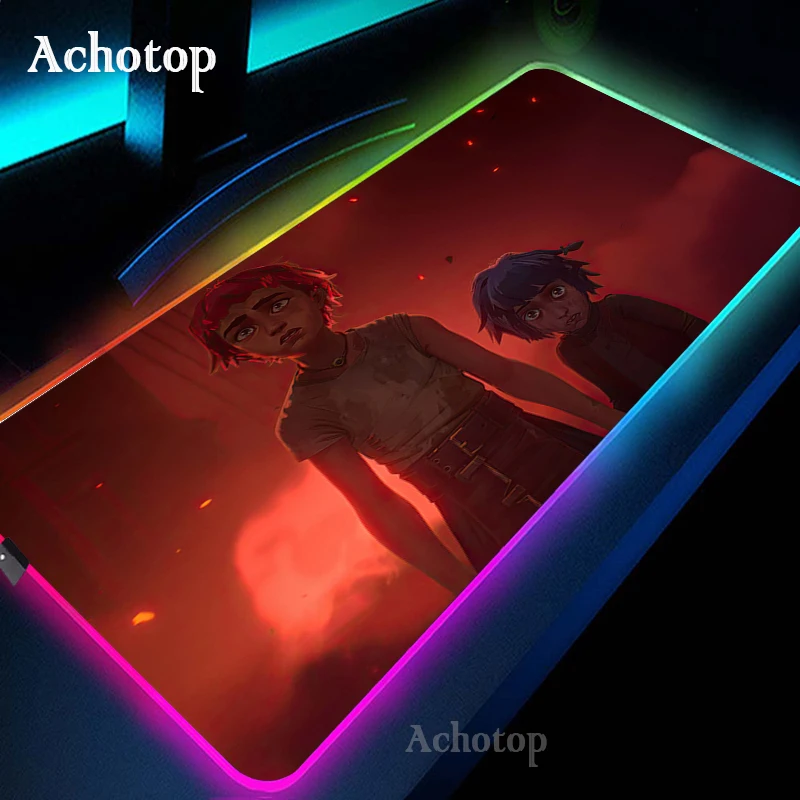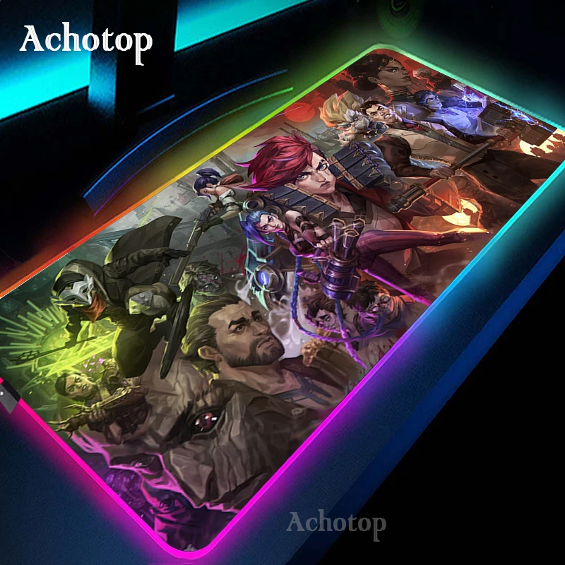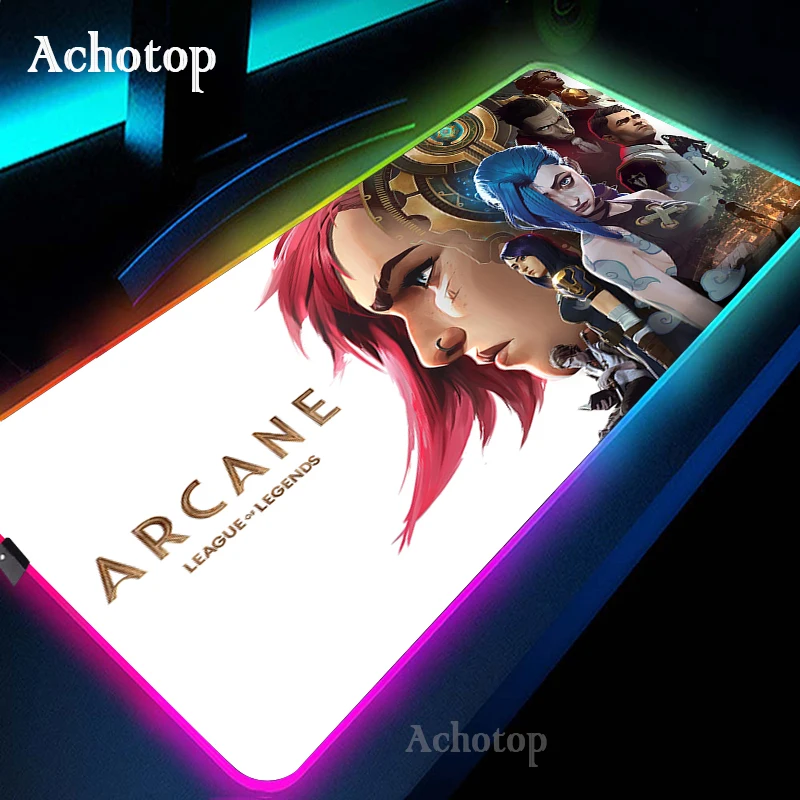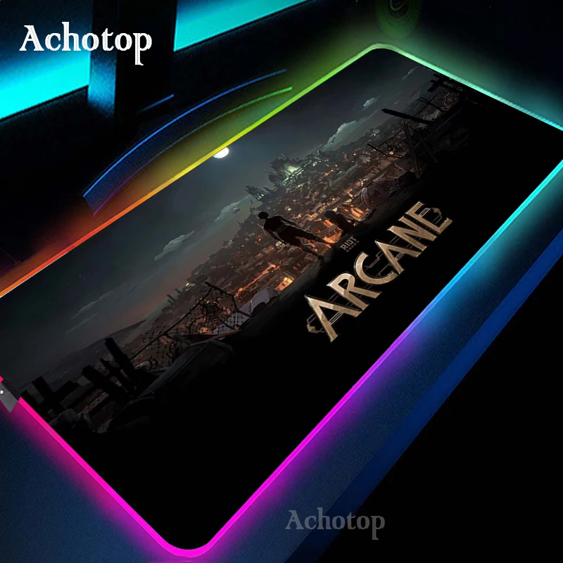 Большой игровой коврик Arcane 90x40 см для клавиатуры и мыши, компьютерный игровой Настольный коврик для мыши RGB со светодиодный Ной подсветкой, коврики для офисной игровой мыши LOL