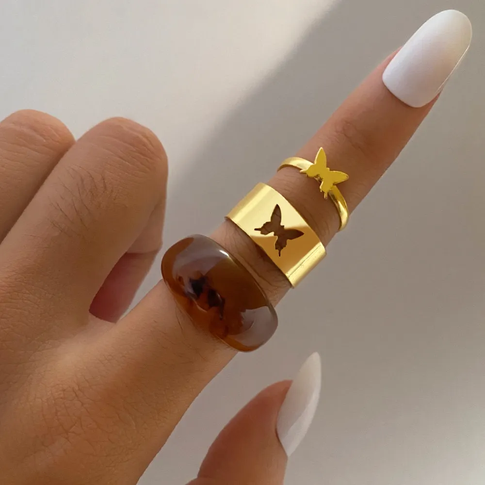 Женский винтажный набор колец в виде бабочек, разноцветные кольца в...