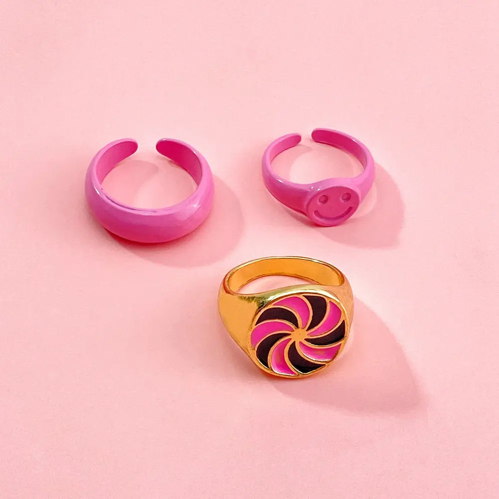 Винтажный набор эмалевых колец в форме сердца и улыбки для женщин, ...