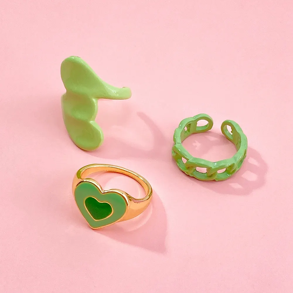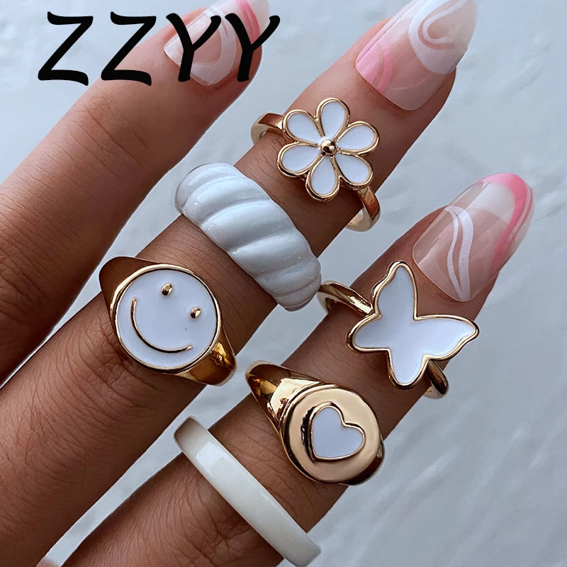Женский комплект колец ZZYY золотистого цвета, винтажное Ювелирное Украшение на палец в форме сердца, улыбки, красочные аксессуары в стиле эмо, готика, Y2k
