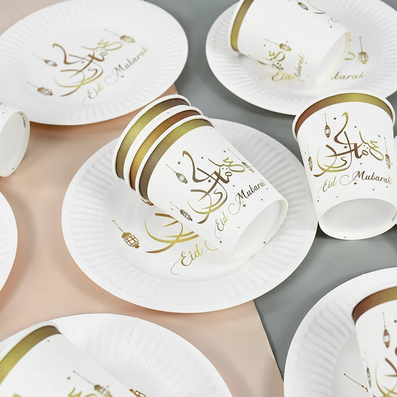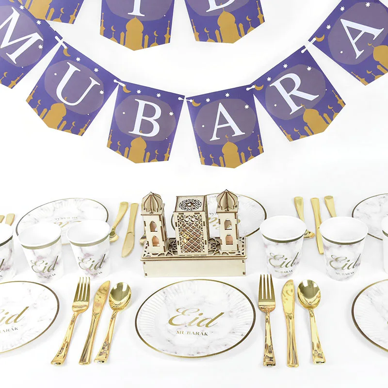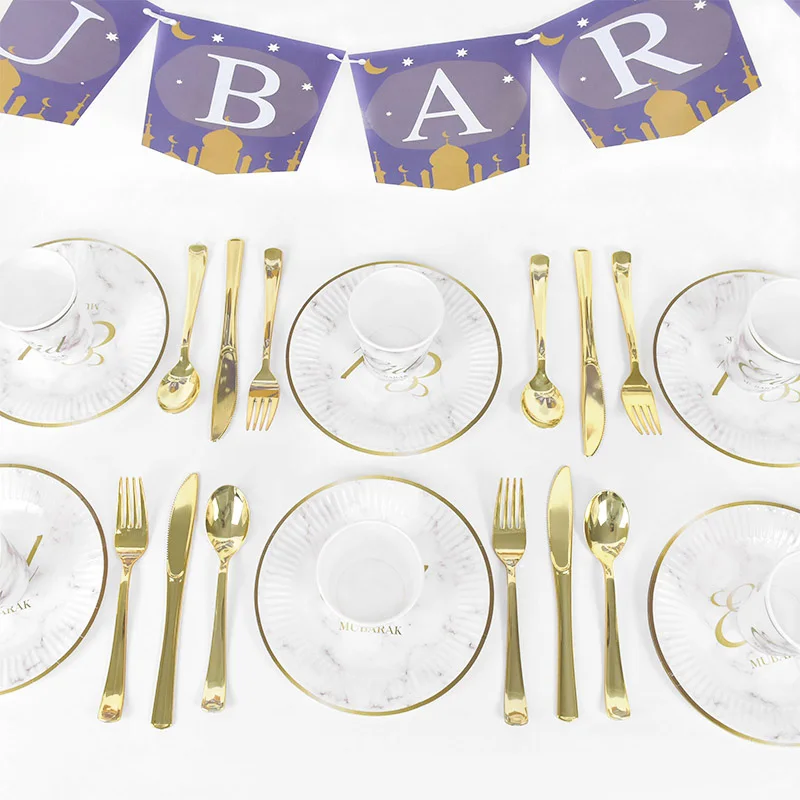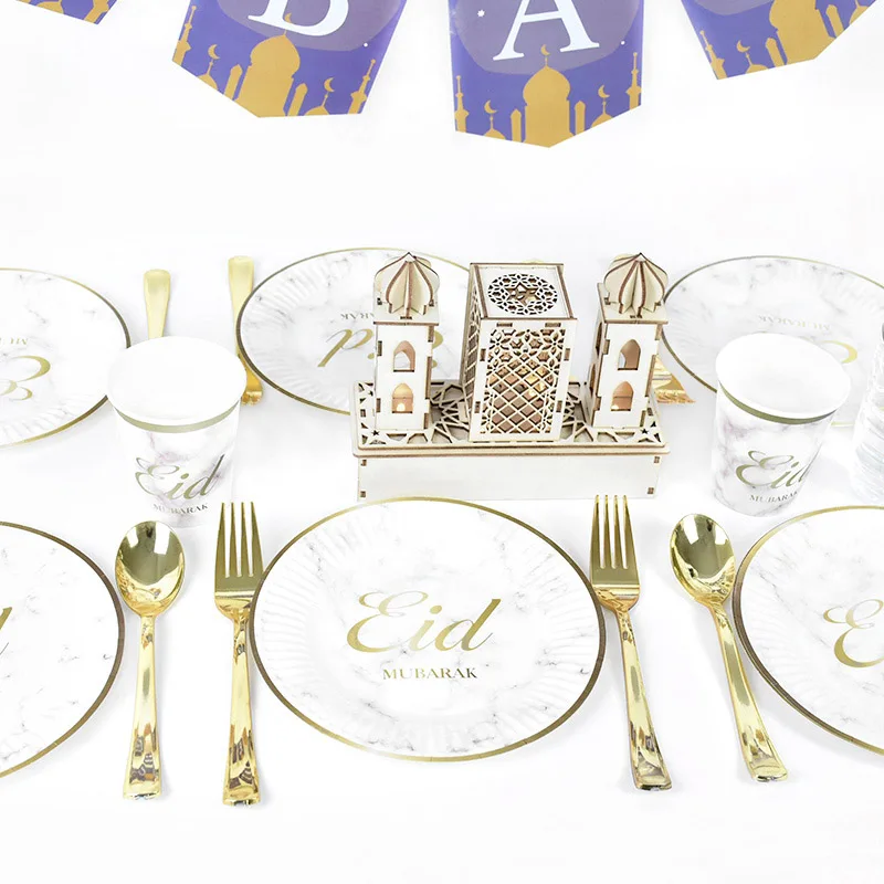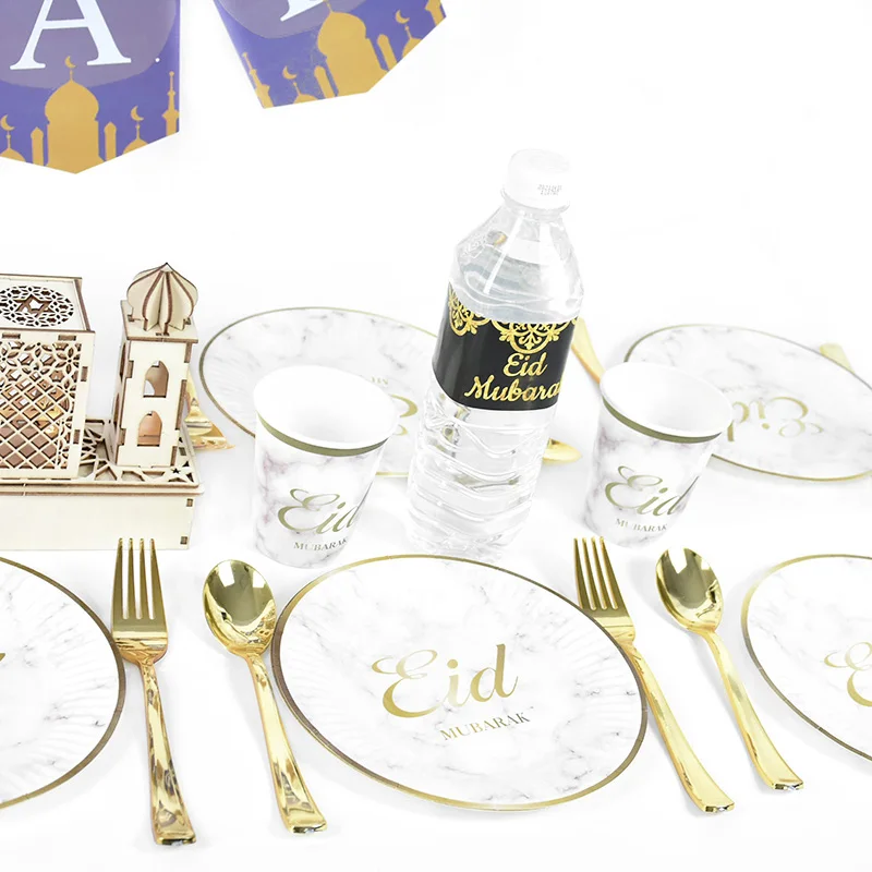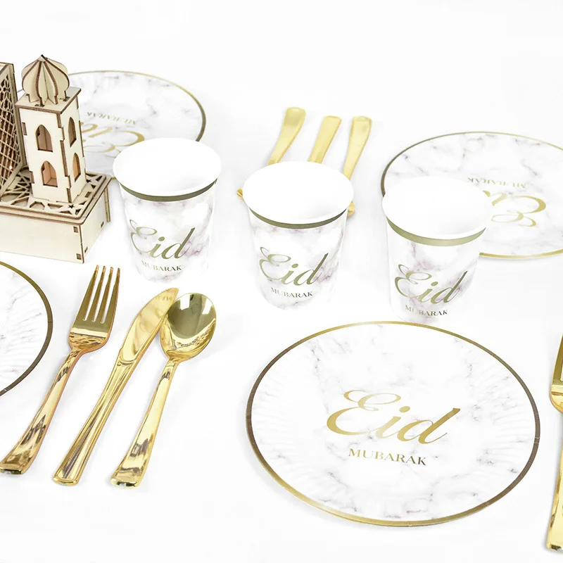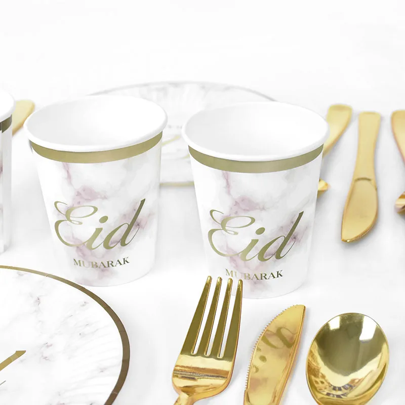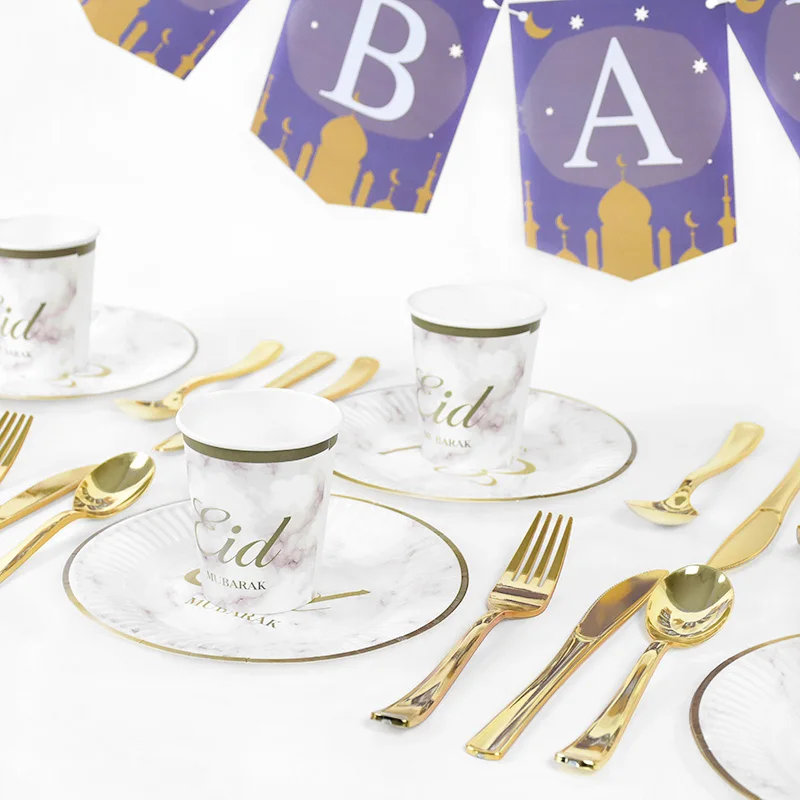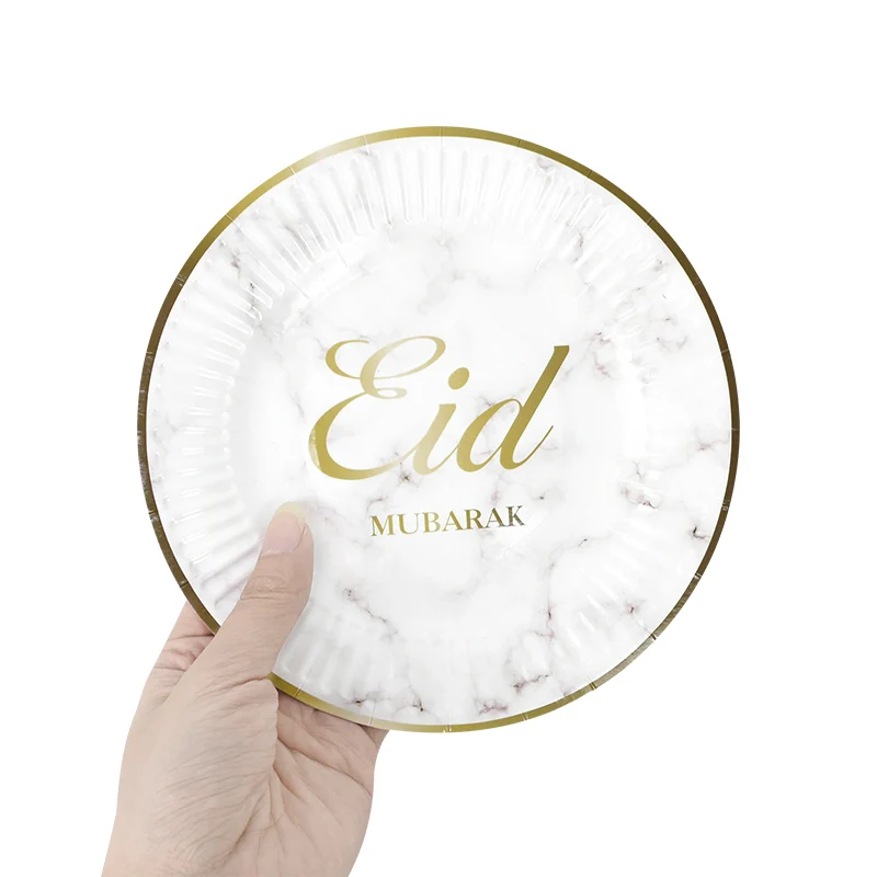 Eid Мубарак мраморный узор одноразовая посуда бумажная тарелка чашка баннер Рамадан Карим украшение исламский мусульманский фестиваль принадлежности