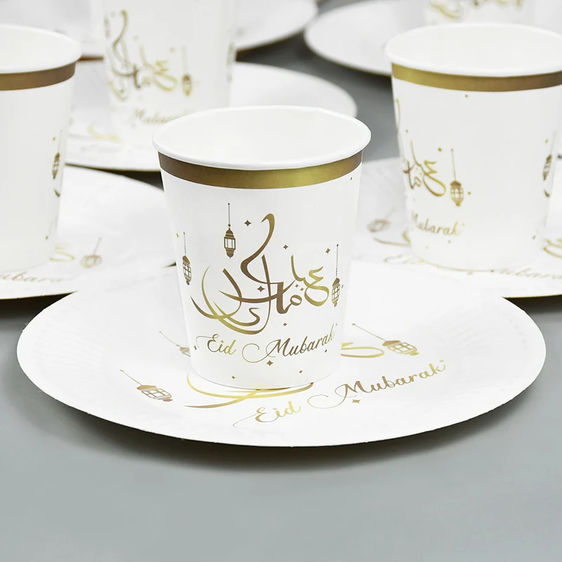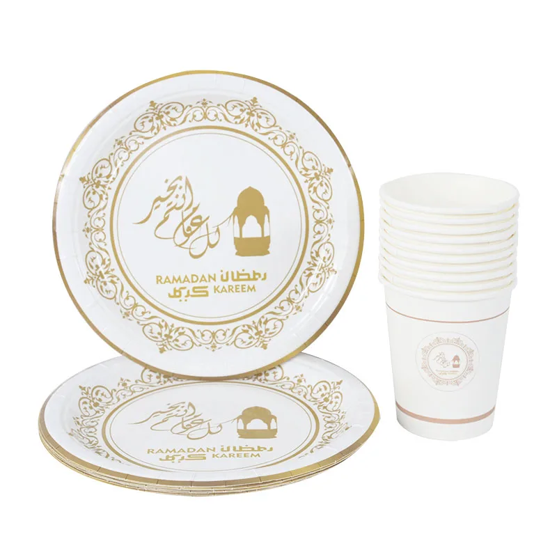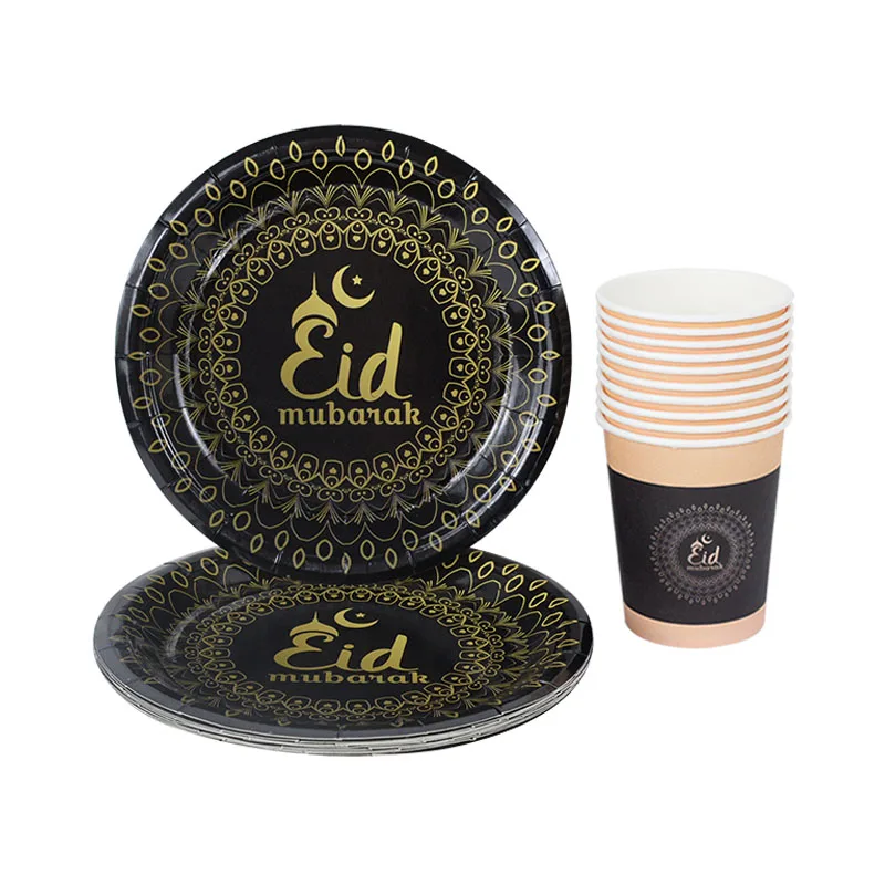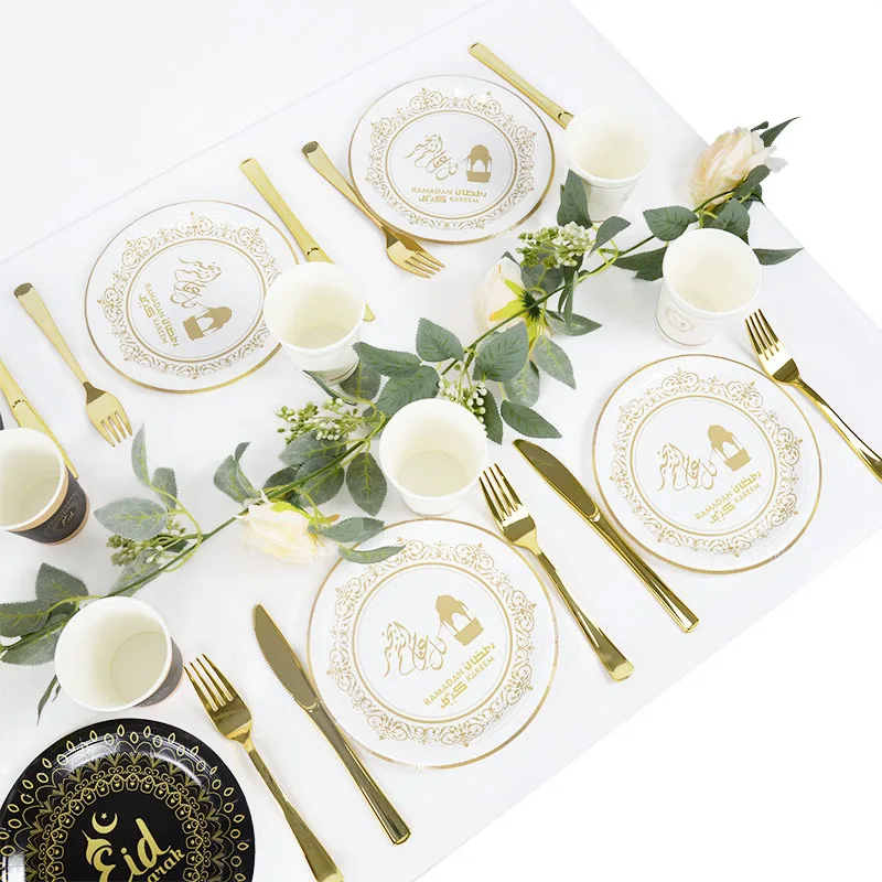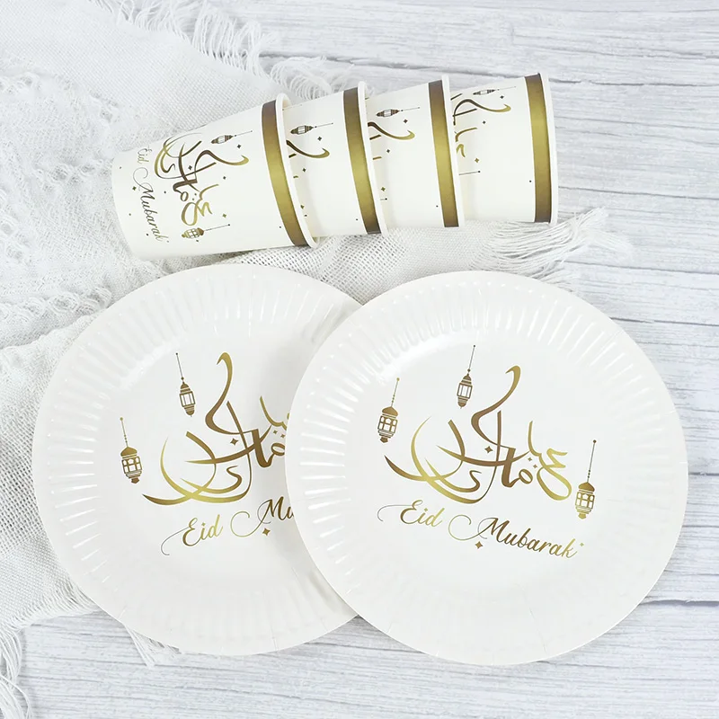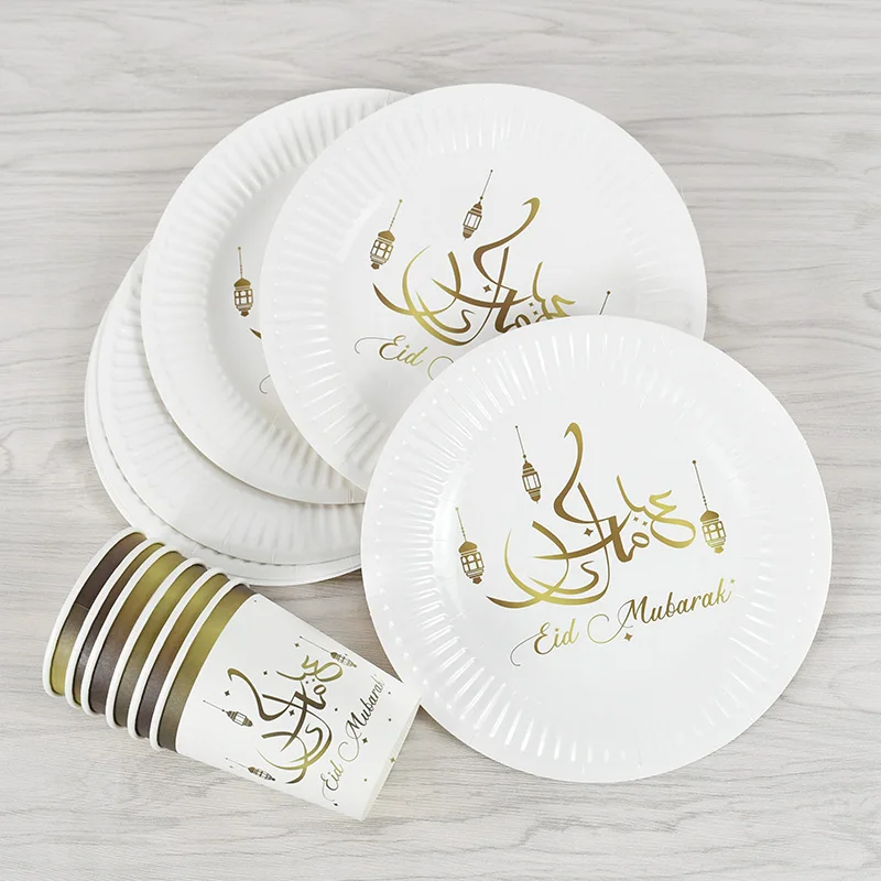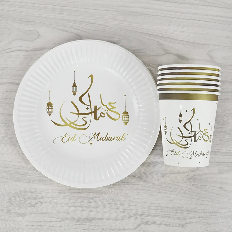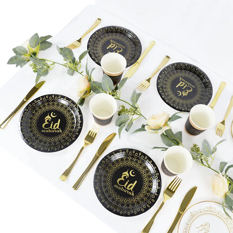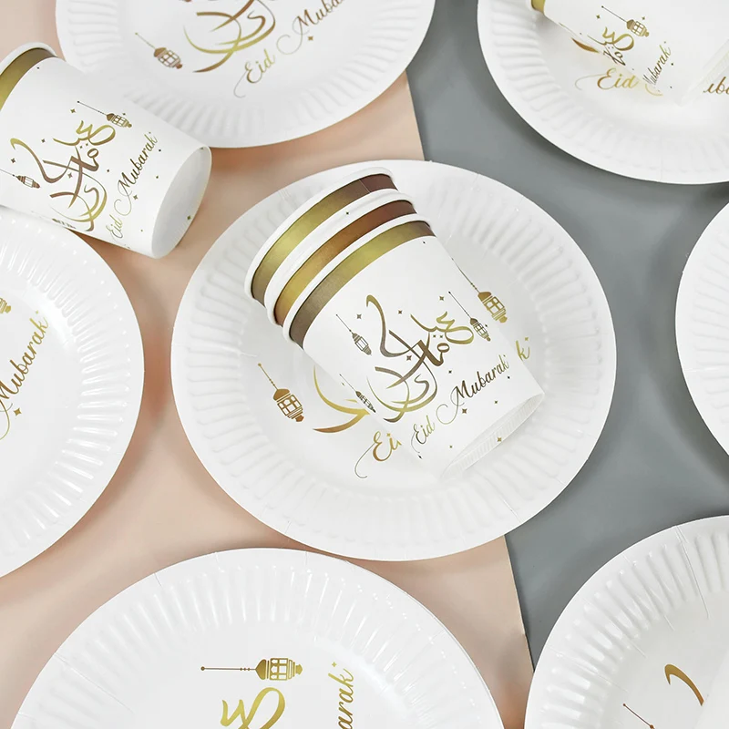 Eid Мубарак мраморный узор одноразовая посуда бумажная тарелка чашка баннер Рамадан Карим украшение исламский мусульманский фестиваль принадлежности