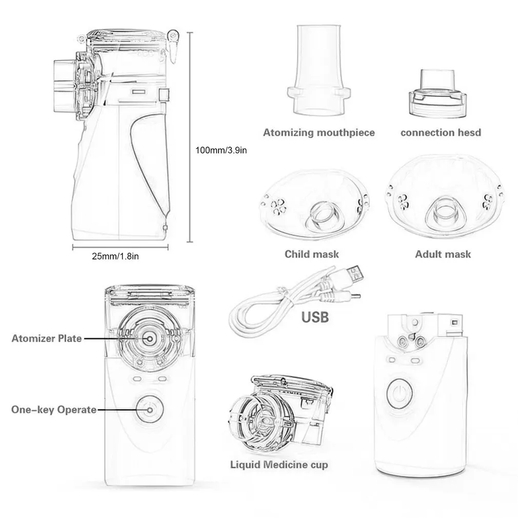Ультразвуковой портативный небулайзер, электронная сигарета, медицинский бытовой ингалятор от астмы и кашля для детей и взрослых
