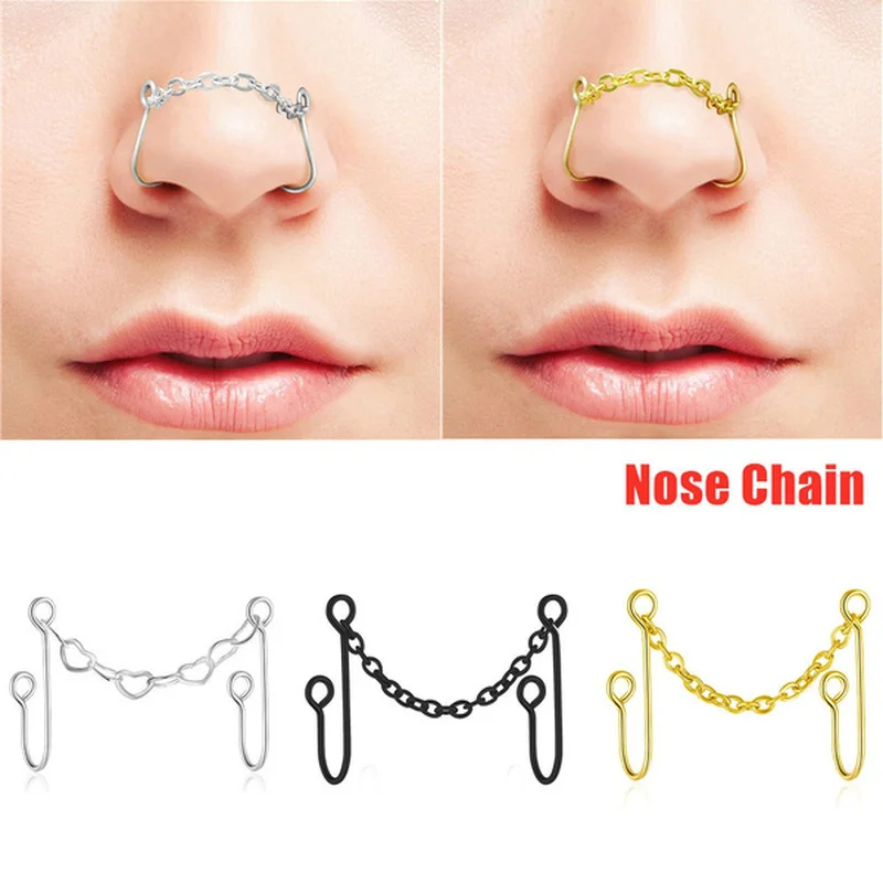 Цепочки для носа для двойных поддельных клипс для носа пирсинг в фо...