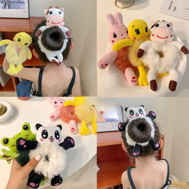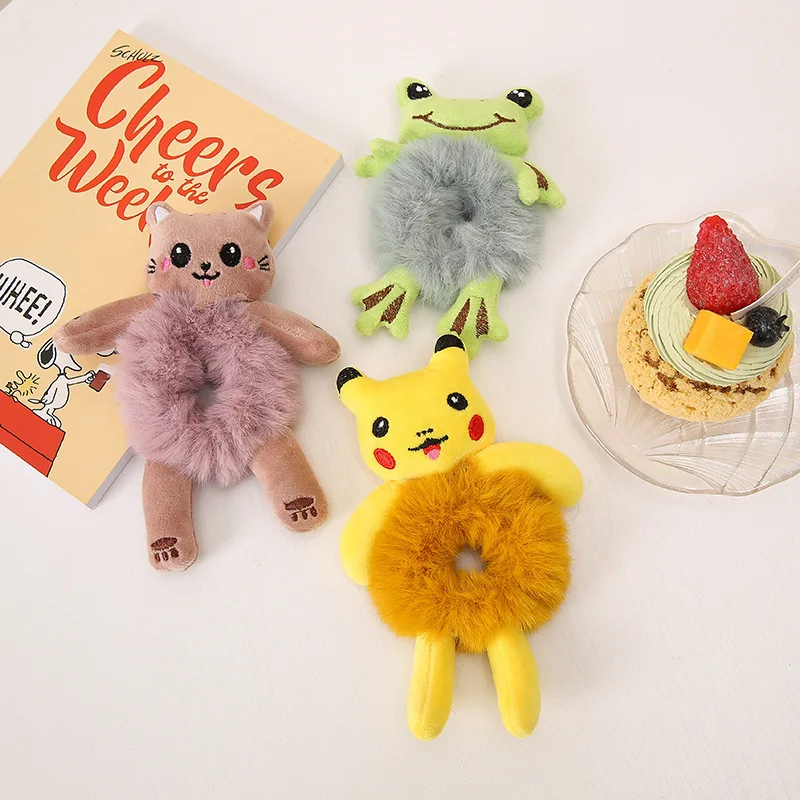 Женские милые плюшевые эластичные резинки для волос с изображением лягушки, панды, кролика, милые резинки для волос, аксессуары для волос для девочек