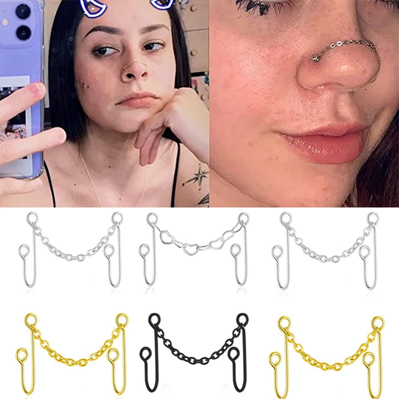 Цепочки для носа для двойных поддельных клипс для носа пирсинг в фо...