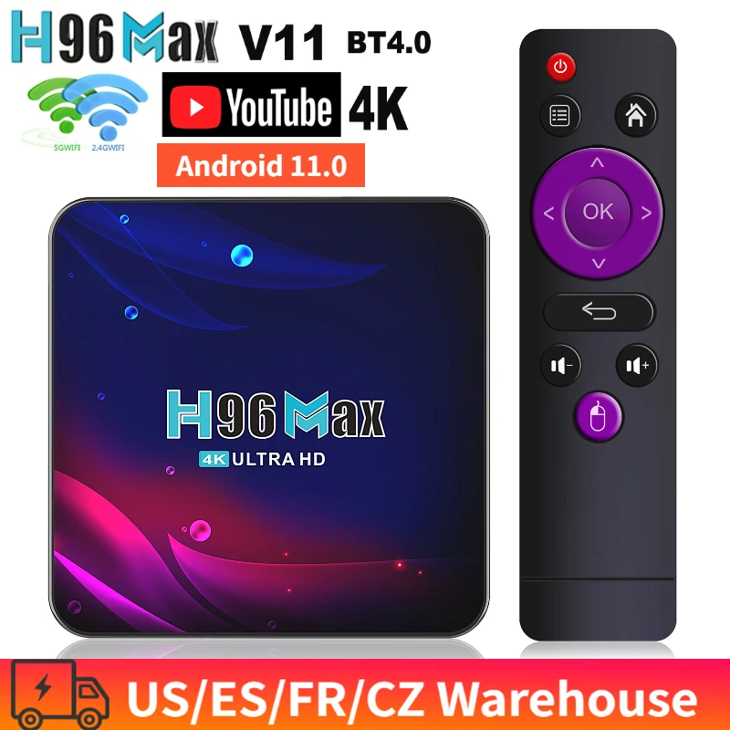 Приставка Смарт-ТВ H96 Max V11, Android 11,0, UHD 4K, медиаплеер, RK3318, 4 ГБ64 ГБ, 2,4G5G, двухдиапазонный Wi-Fi, BT4.0, 100M, LAN VP9, H.265, ТВ-приставка