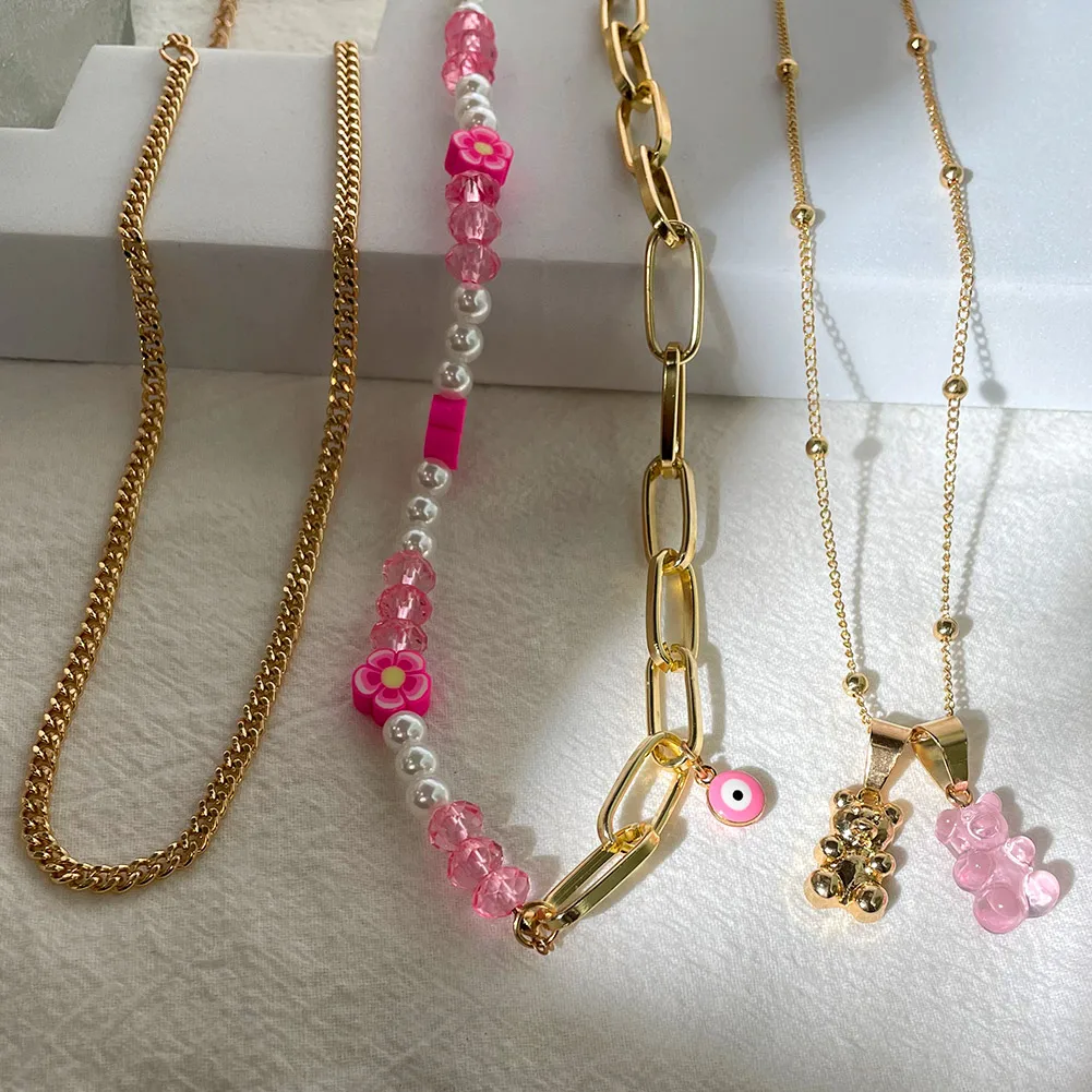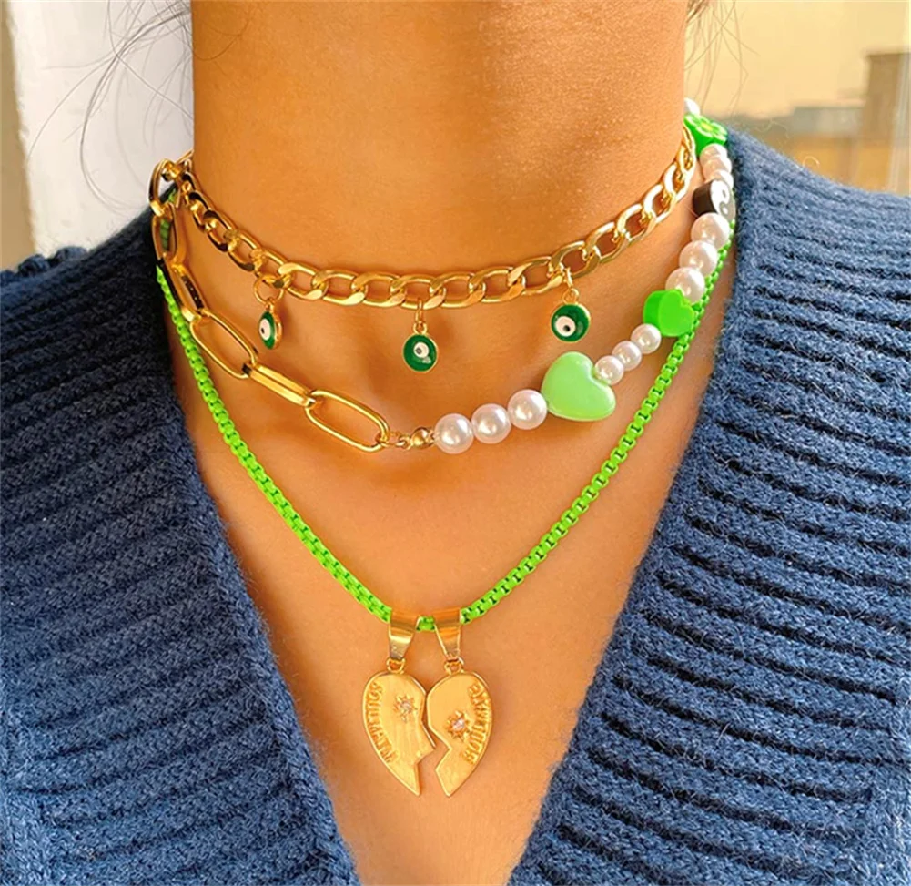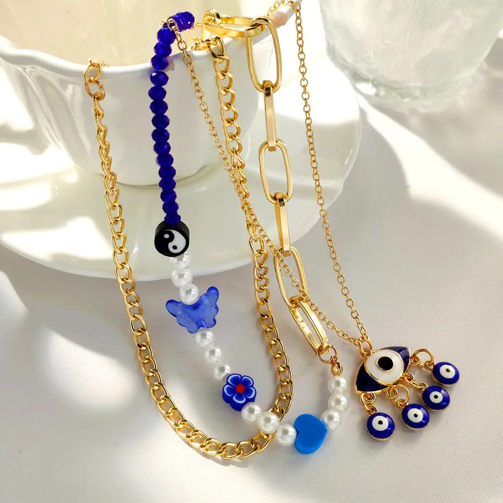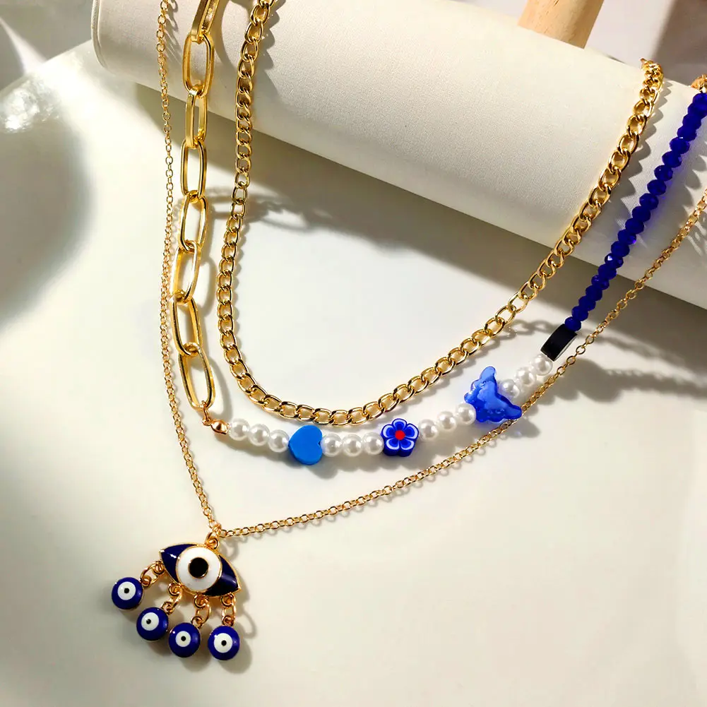 Многослойные Бусины злые глаза, зеркальные бусины для женщин, Цветочные бусины, асимметричное жемчужное металлическое ожерелье-цепочка, модные украшения