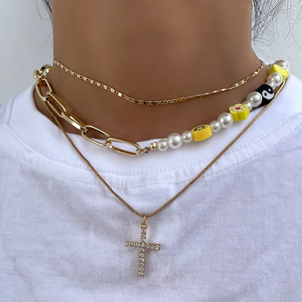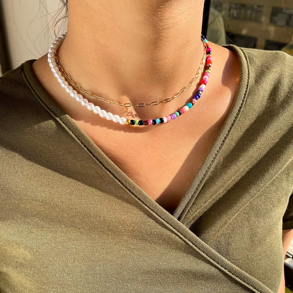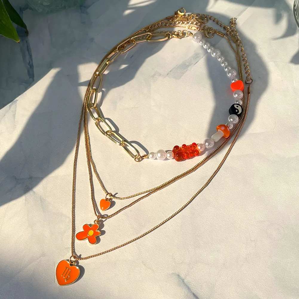 Многослойные Бусины злые глаза, зеркальные бусины для женщин, Цветочные бусины, асимметричное жемчужное металлическое ожерелье-цепочка, модные украшения