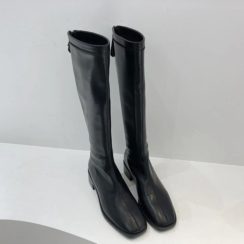 Женские кожаные сапоги до колена на молнии, женские длинные рыцарск...