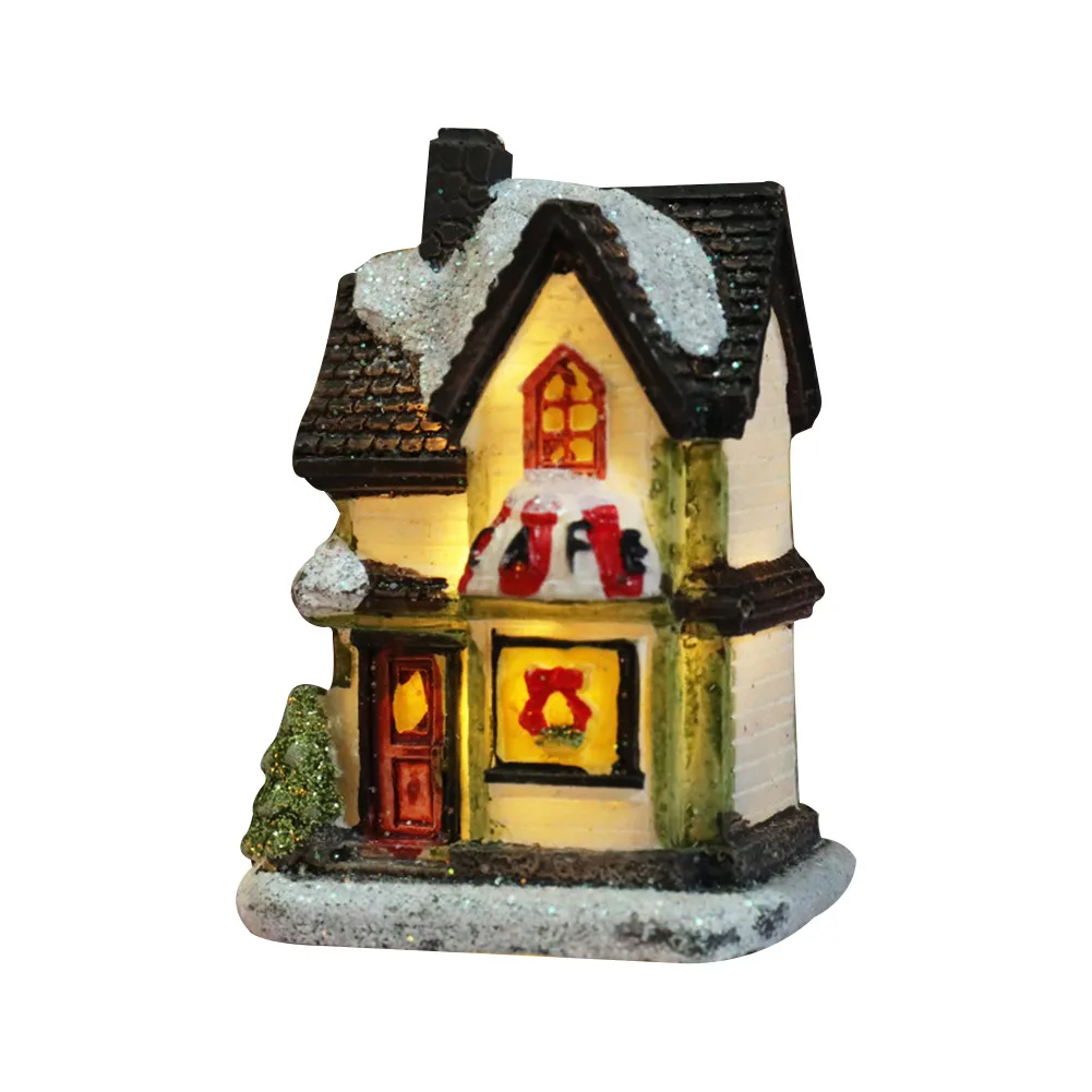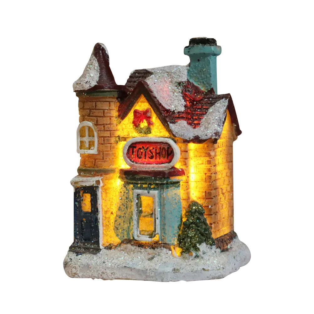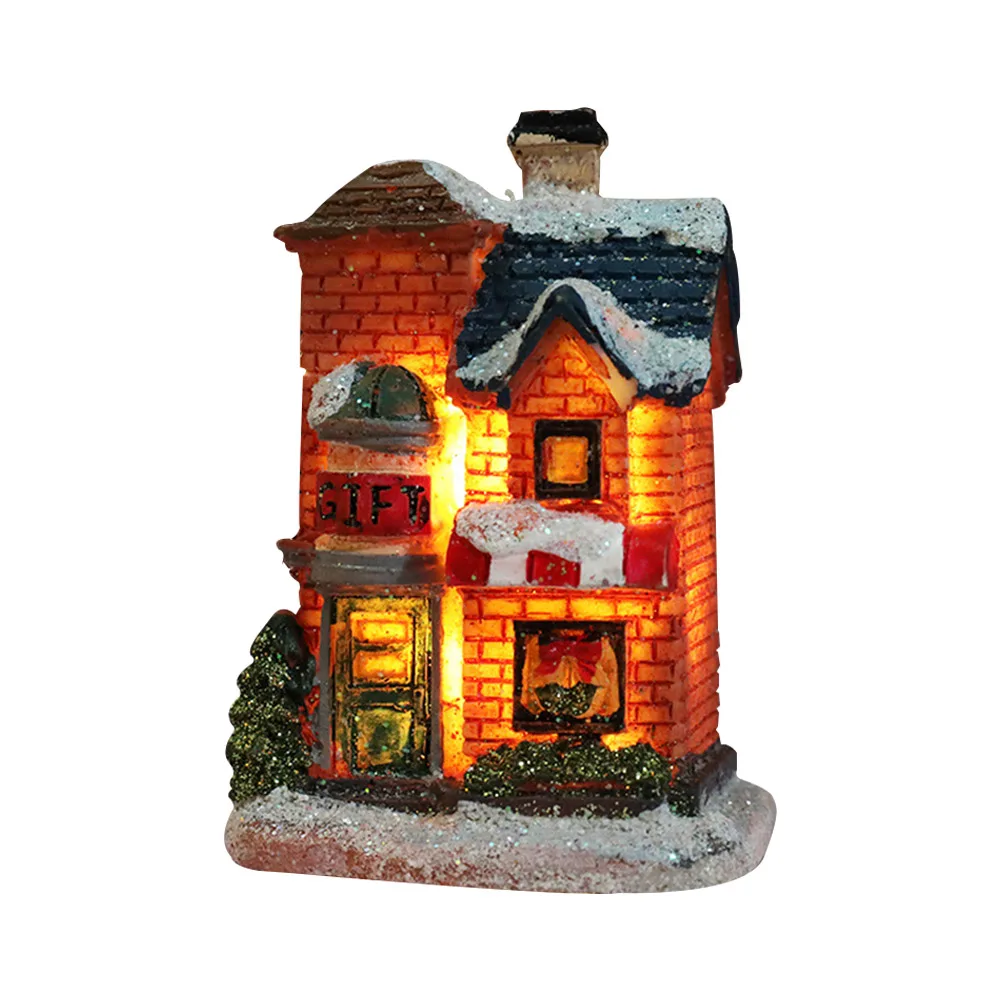 Рождественская сцена, скульптура из смолы, деревенский дом, светодиодный светильник, деревенские фигурки, Рождественский орнамент, новогодние подарки для детей