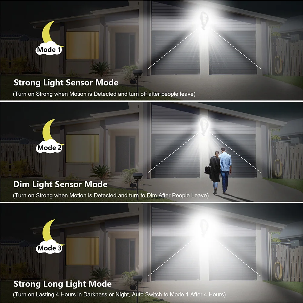-Выключение: режим выключения, индикатор красный;-Первая передача: некоторые люди приближаются, ярко загораются в течение 15-30 секунд, когда ни один не выключается;-Вторая передача: некоторые люди приближаются, ярко светятся в течение 15-30 секунд, и когда их нет, свет всегда яркий и слабый;-Третий механизм: независимо от того, нет ли там кого-то, и слабый свет всегда горит.