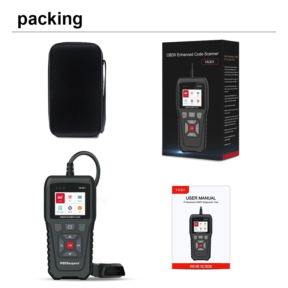 1 шт. * OBDResource YA301 считыватель кодов1 шт. * Руководство пользователя на английском языке1 шт. * защитный чехол