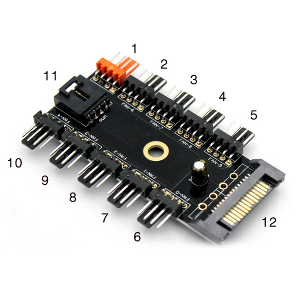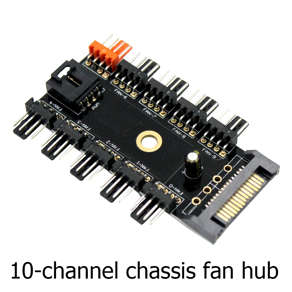 1. Он может поддерживать 10 вентиляторов с 3-контактным/4-контактным интерфейсом. После подключения кабеля контроля скорости PWM может быть осуществлен контроль температуры и регулирование скорости вентилятора.
