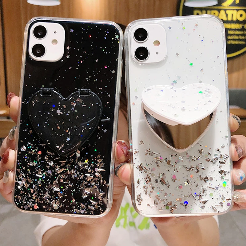 5. Дизайн прожектора: Силиконовый ТПУ, блестящий, блестящий, с держателем кронштейна, эпоксидный, роскошный, серебряная фольга, звездное небо, макияж в форме сердца, зеркало