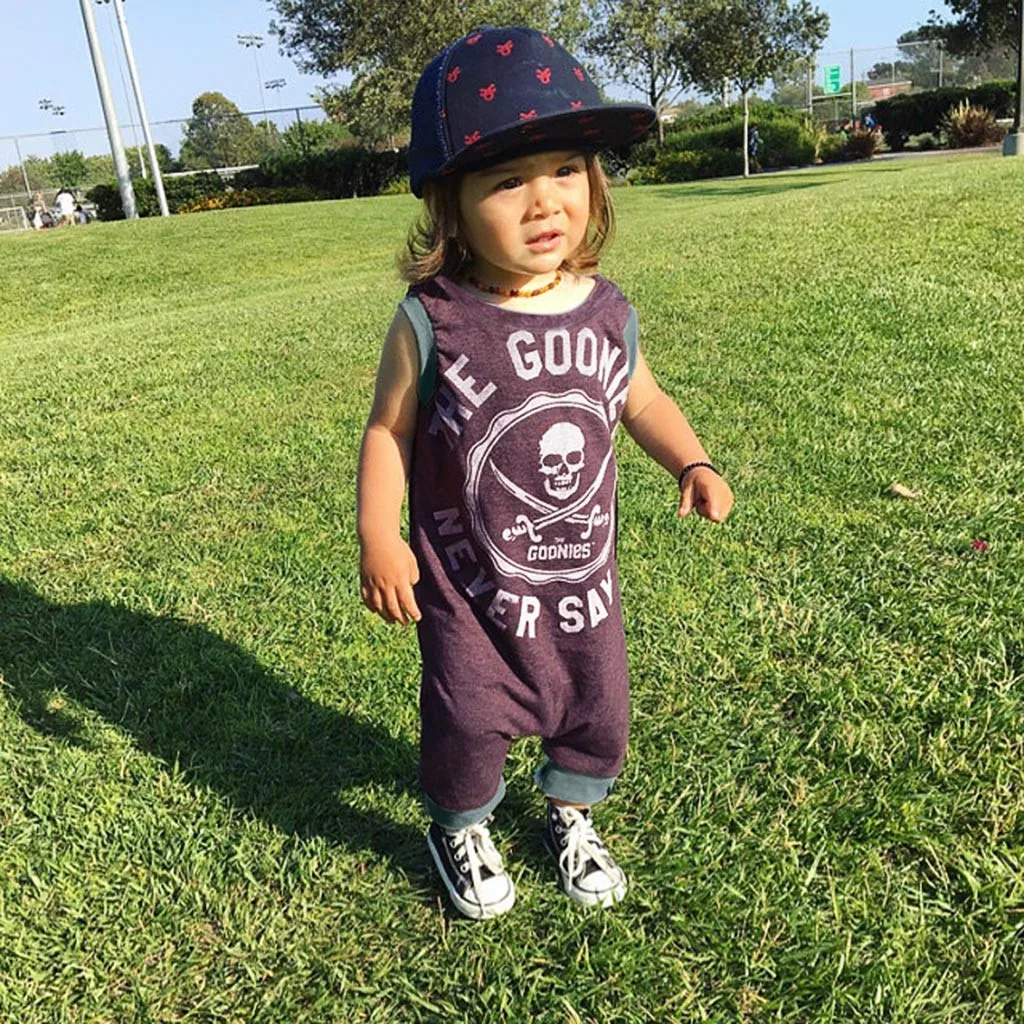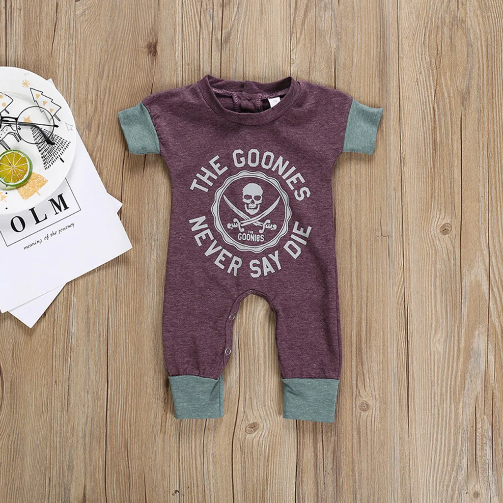 Летняя одежда для новорожденных Для маленьких мальчиков комбинезон с короткими рукавами, с принтом в виде букв с принтом перекрещенных костей комбинезон, боди для малышей повседневная одежда для маленьких мальчиков, одежда для девочек