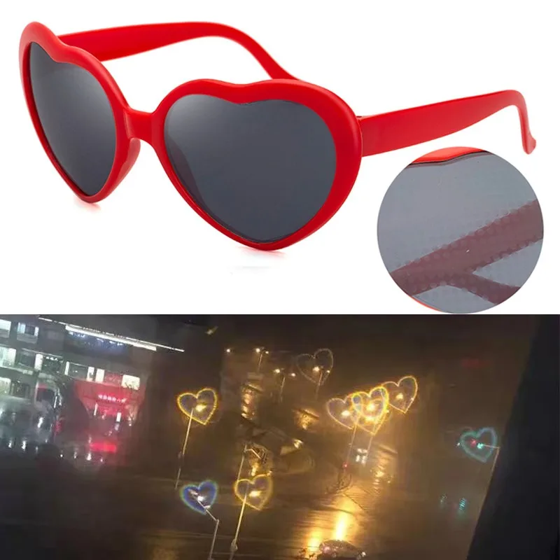 Женские солнцезащитные очки в форме сердца, с дифракцией