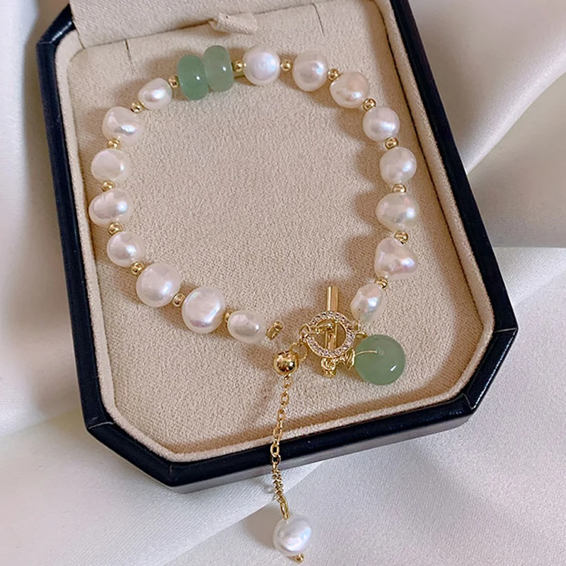 Изысканный позолоченный браслет из натурального пресноводного жемчу...