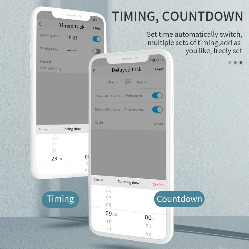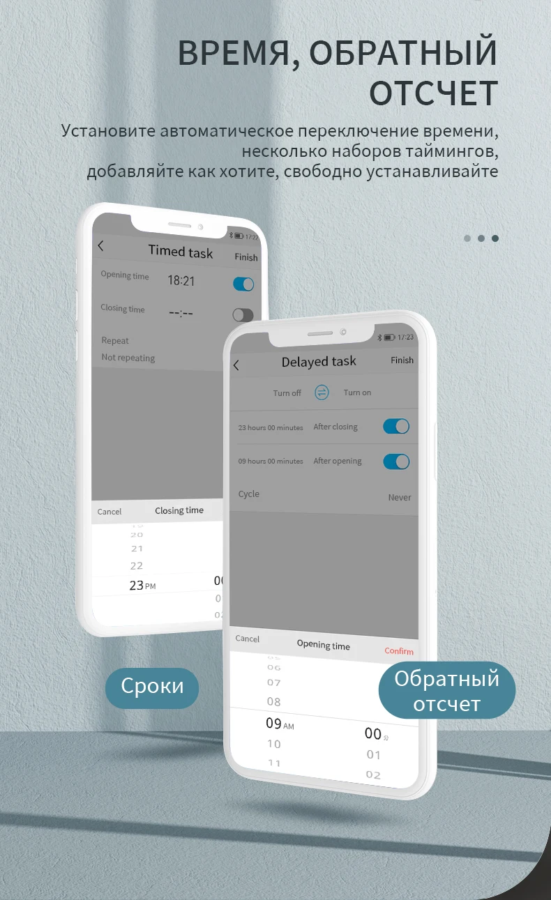 Вы можете управлять переключателем, временем, обратным отсчетом и другими функциями устройства через ваш мобильный телефон.