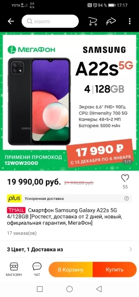 Брал за 17990 с учётом акций. Быстрая доставка. Привез курьер. Все соответствует.