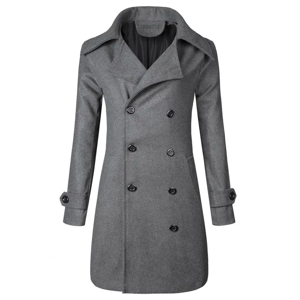 Повседневный длинный тренчкот для мужчин, мужская ветровка в британском стиле с отложным воротником, Мужское пальто, ветрозащитная куртка большого размера с карманами