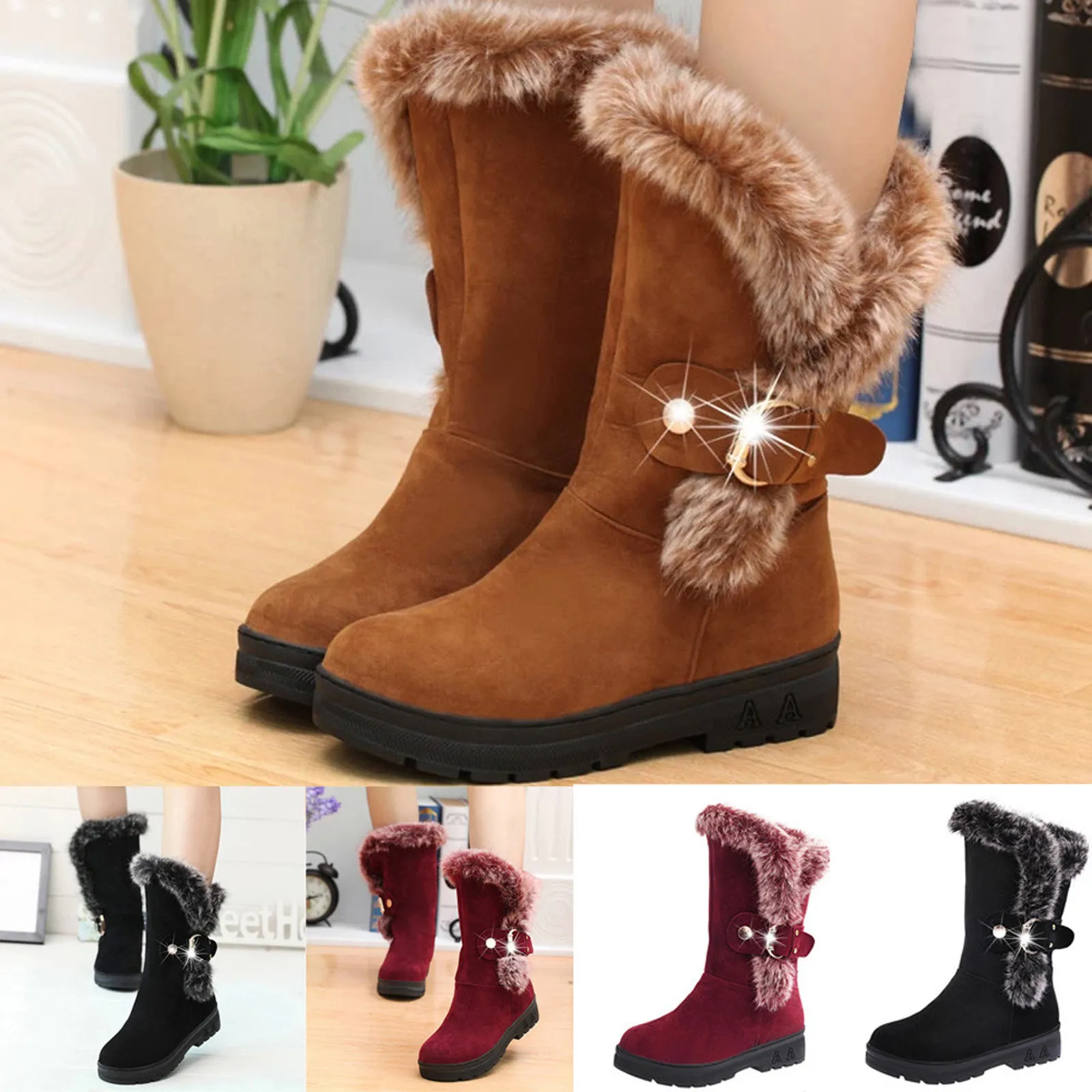 2021 зимние теплые модные Женские ботинки без шнуровки мягкие зимние ботинки с круглым носком на плоской подошве зимние ботильоны Сапоги Женские