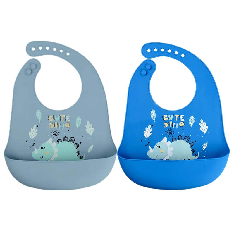 Детские нагрудники с принтом динозавра, водонепроницаемые Мягкие силиконовые нагрудники с милым мультяшным рисунком для кормления детей, мальчиков и девочек, регулируемый детский нагрудник