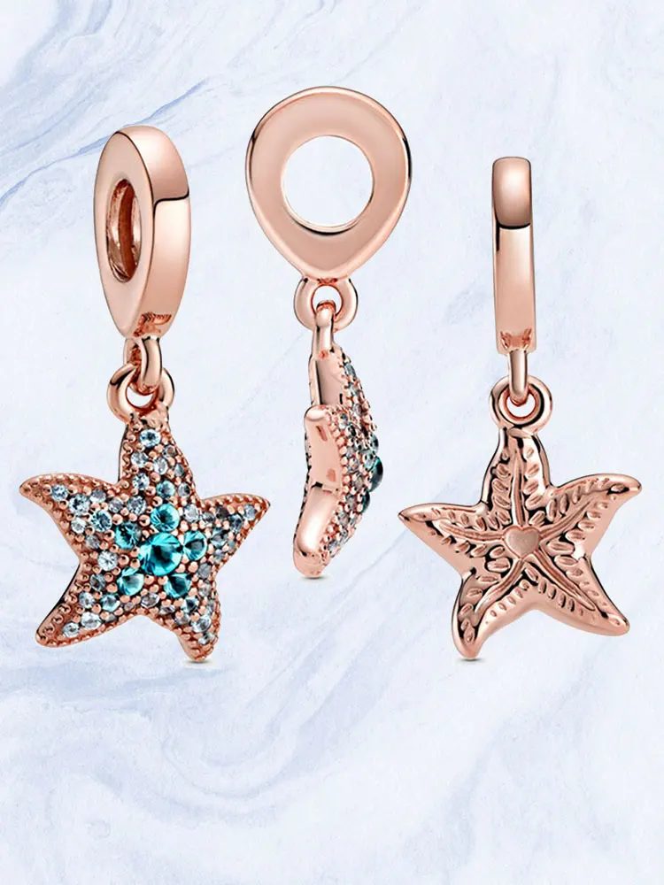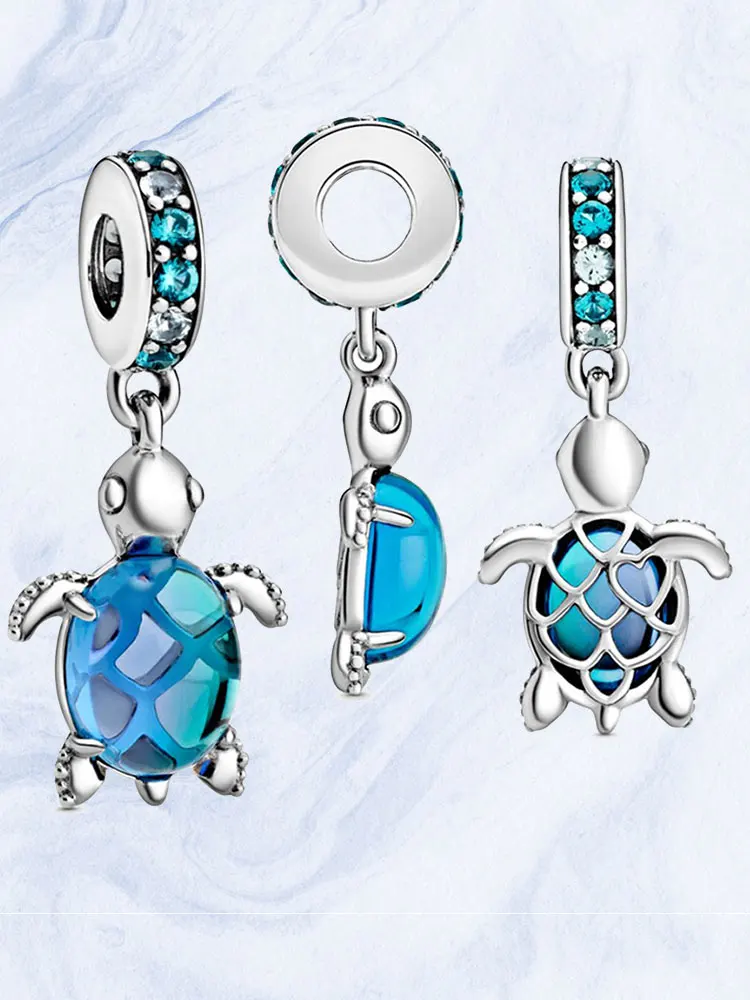 Подвеска из серебра 925 пробы в виде черепахи, морской звезды, с перфорацией, фламинго, подходящая для оригинального браслета, ювелирные изделия сделай сам