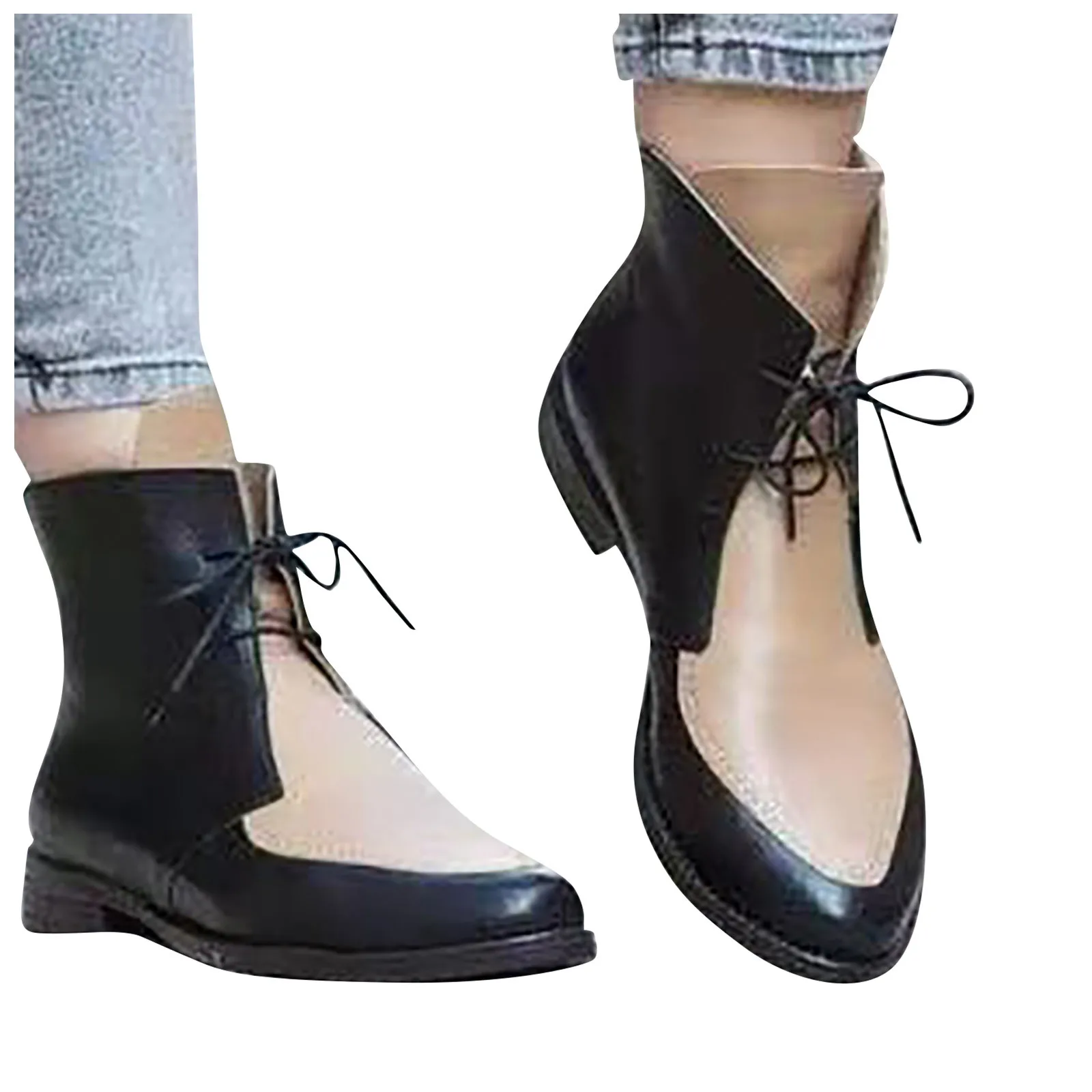 Модная женская обувь; Сезон осень-зима; Кожаные ботильоны на шнуровке с острым носком на низком каблуке
