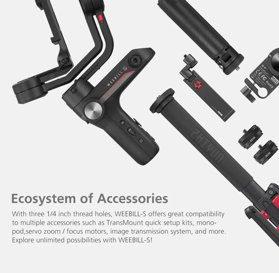 Благодаря новым высокоточным программным алгоритмам и более эффективным двигателям, Webill S может быть с обычными DSLR или беззеркальными камерами и объективами, такими как